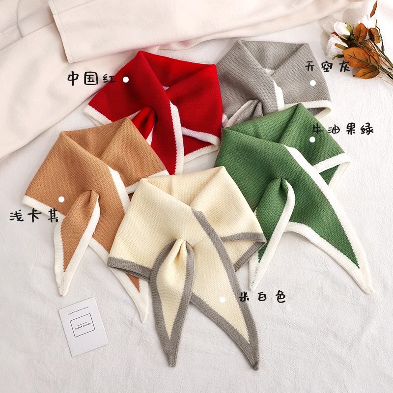 仿羊毛纯色针织三角巾女秋冬季韩系百搭保暖围巾装饰护颈围脖披肩