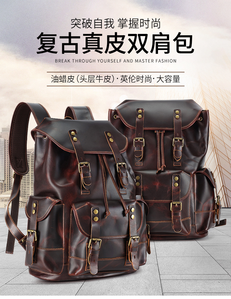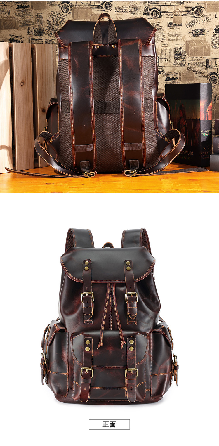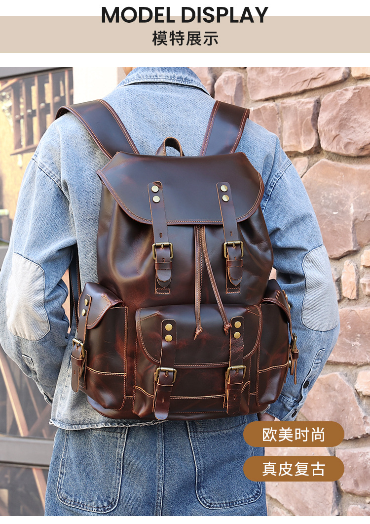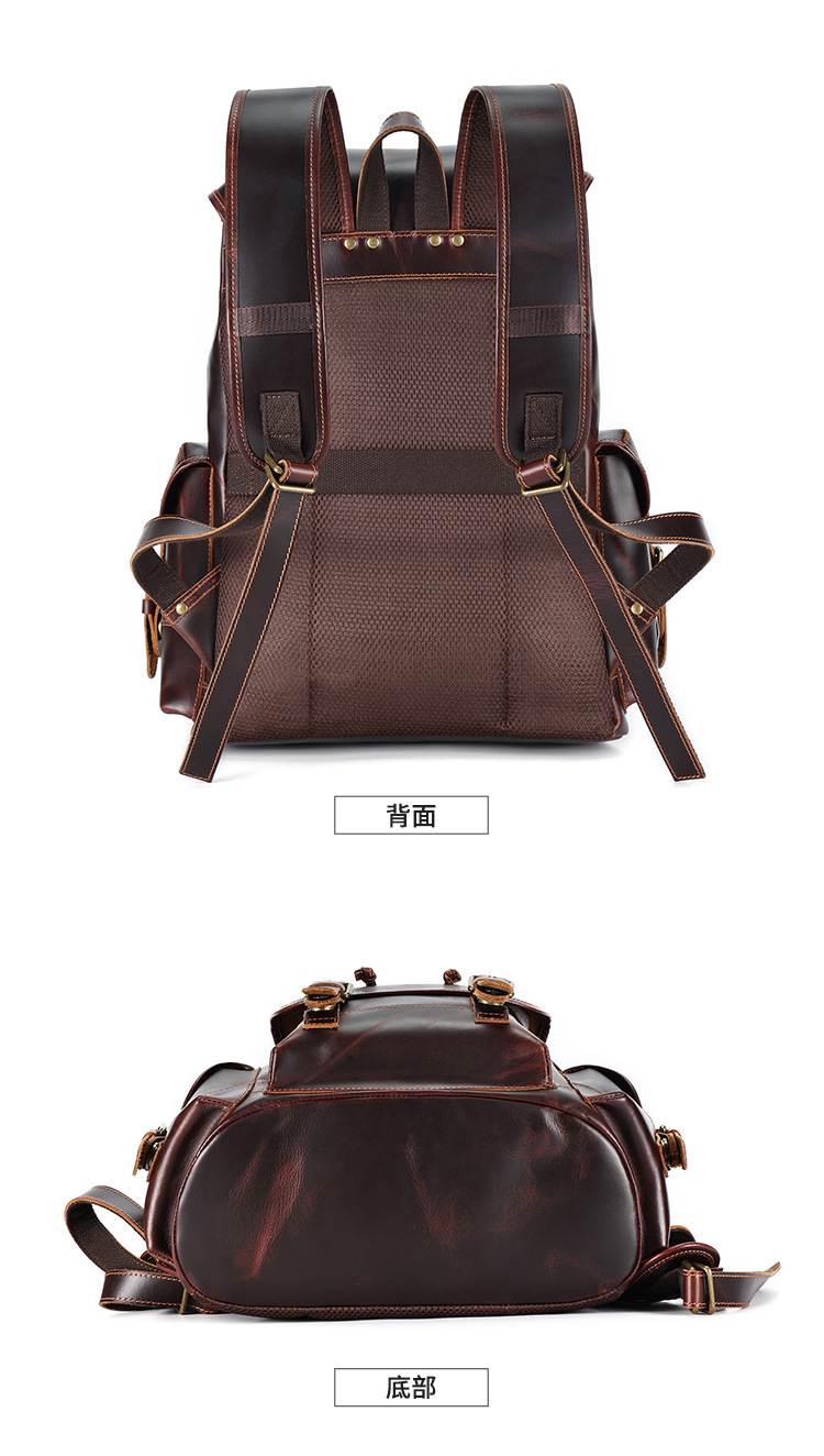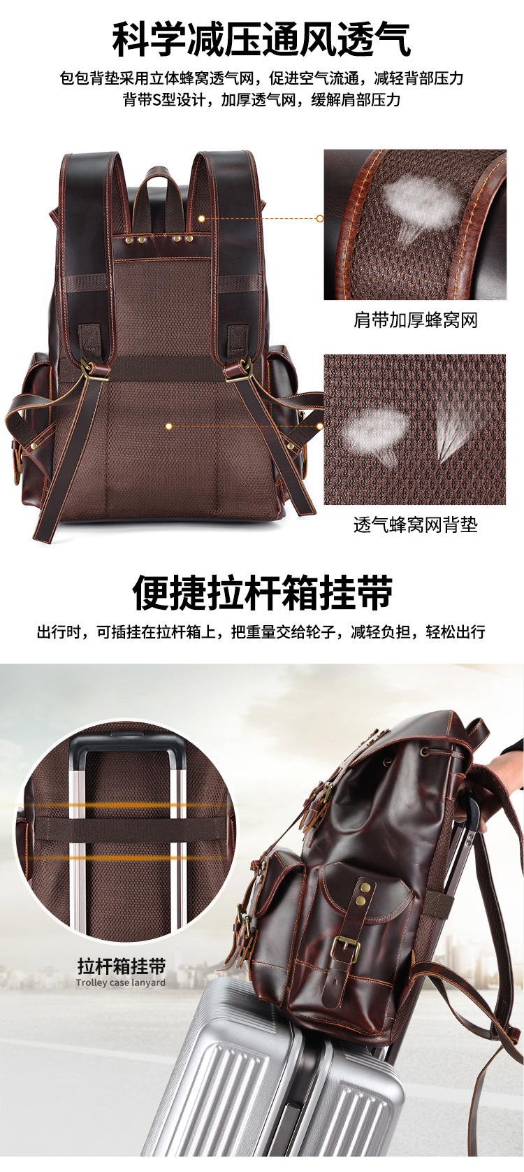 クロスボーダーレトロ本革ハイエンドバックパッククレイジーホーススキン 15.6inch コンピュータバッグ大容量旅行バックパック