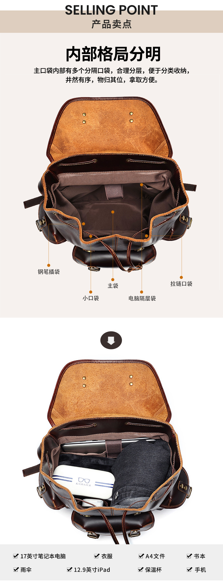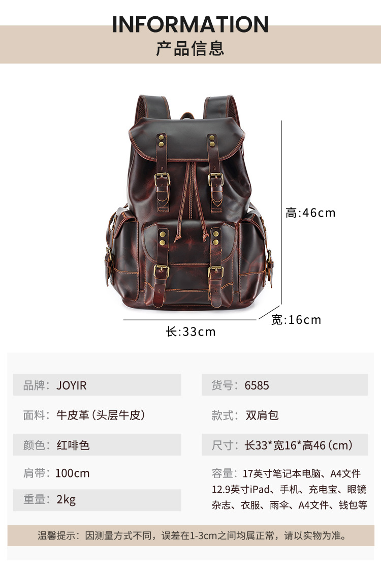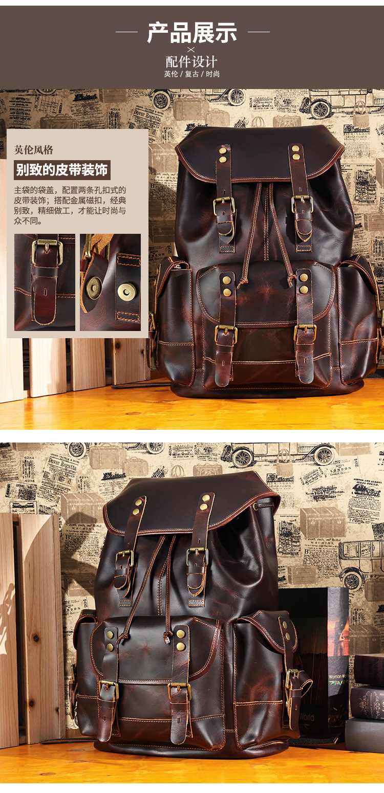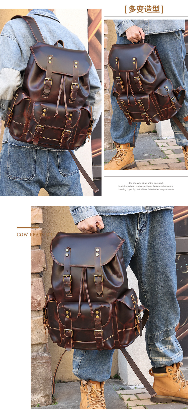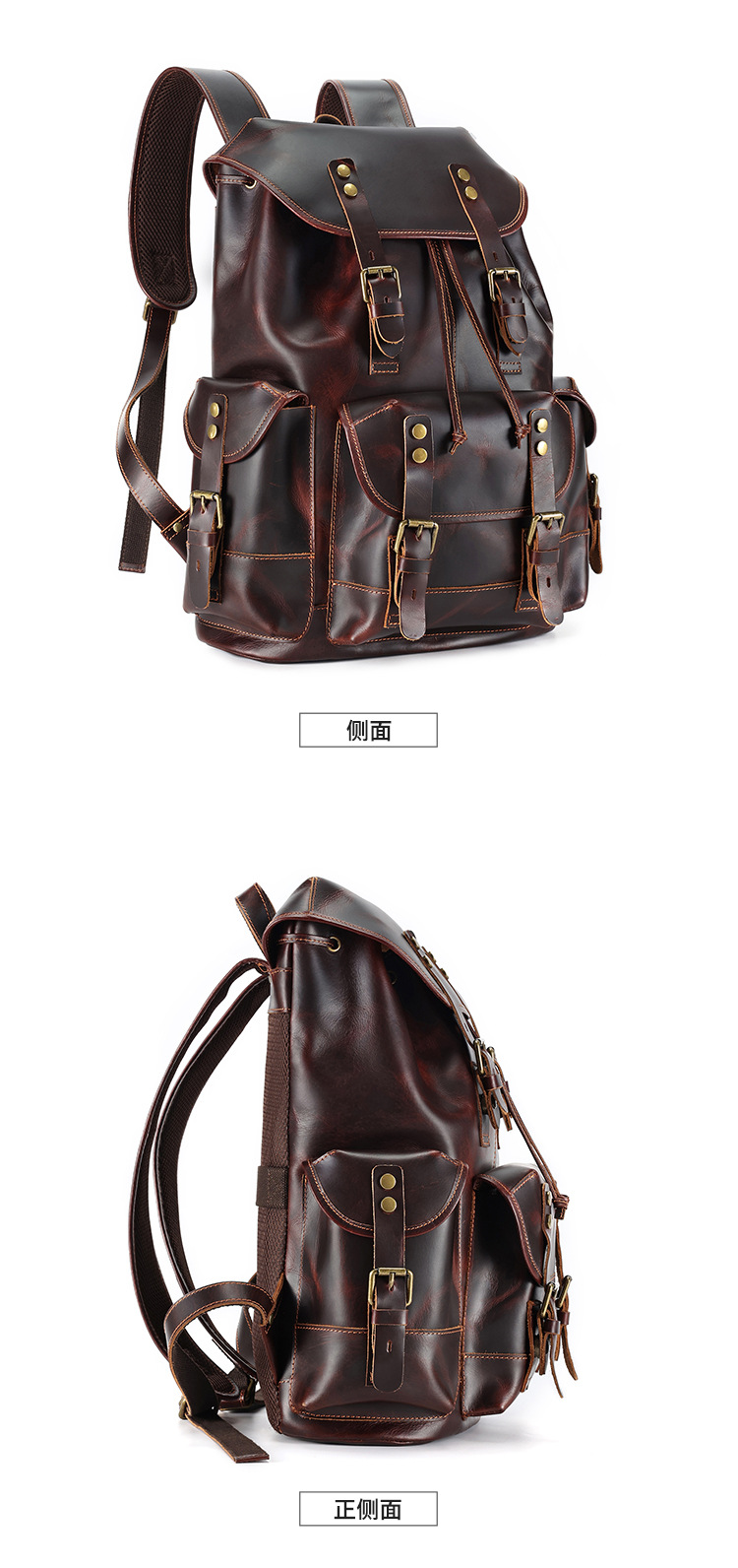 クロスボーダーレトロ本革ハイエンドバックパッククレイジーホーススキン 15.6inch コンピュータバッグ大容量旅行バックパック