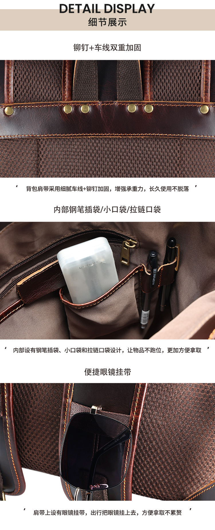 头层牛皮真皮双肩包多口袋大容量休闲旅行包男士背包跨境热销包包
