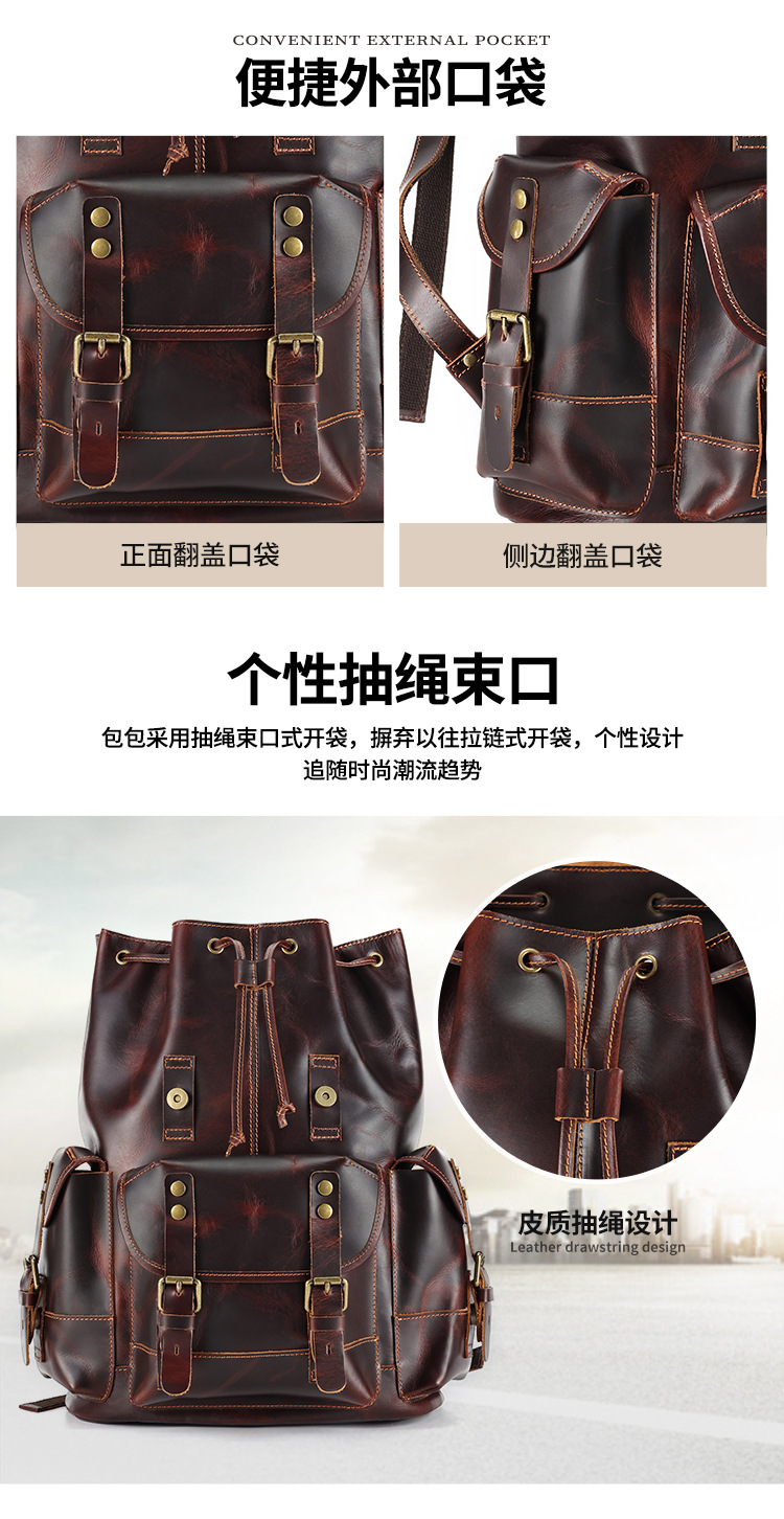 大容量本革リュックサックアウトドアリュックサック多ポケット旅行カバン男性カバンクロスボーダー新型リュックサック
