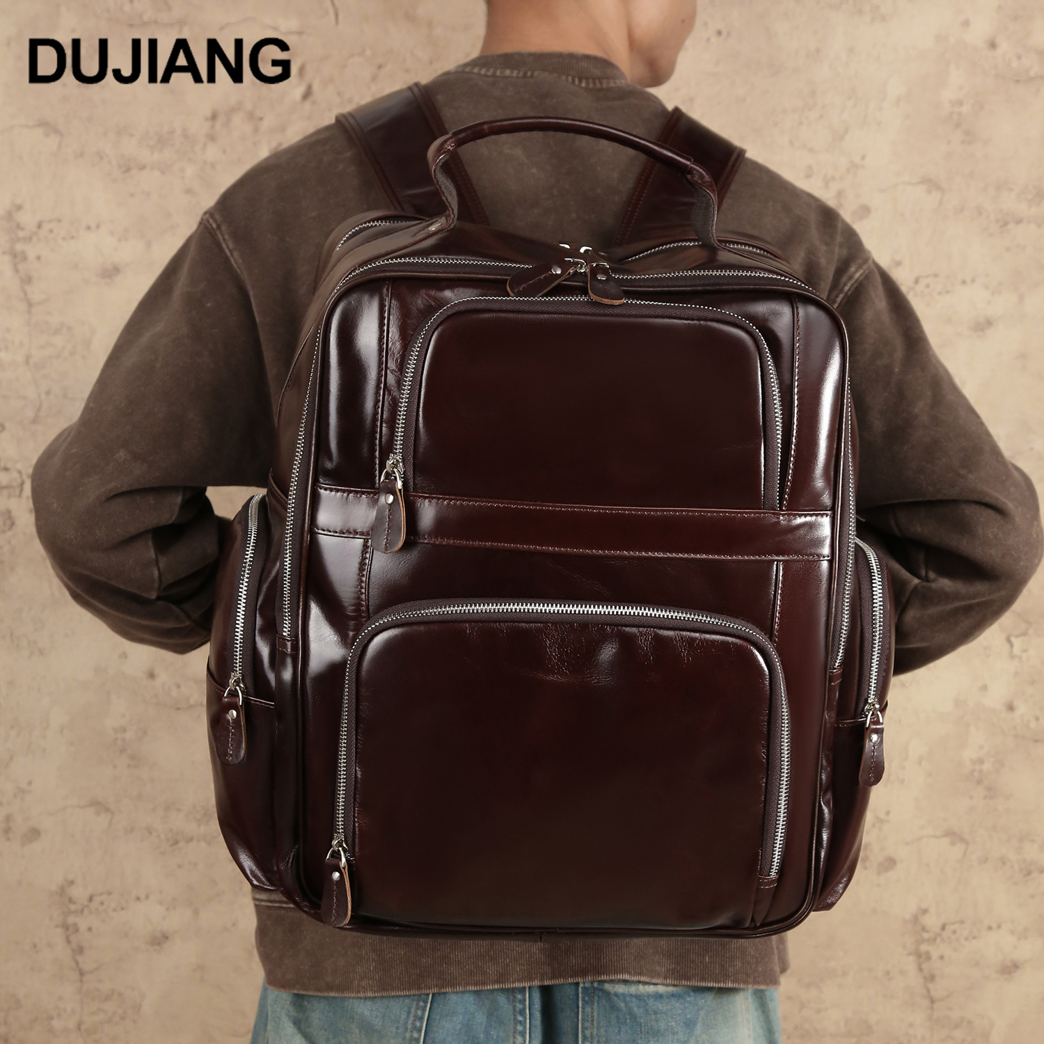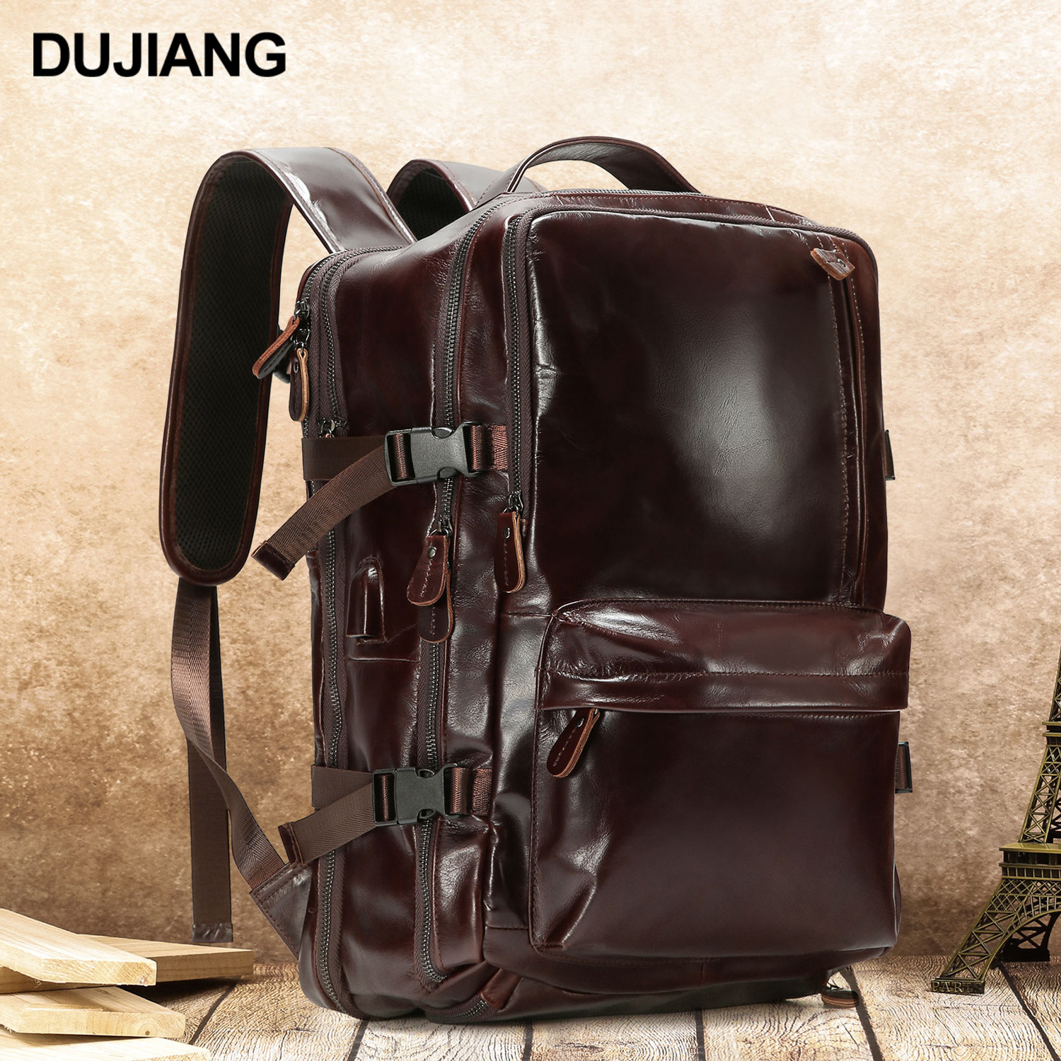跨境真皮双肩包可扩容大容量旅行包多功能商务休闲背包男士包包