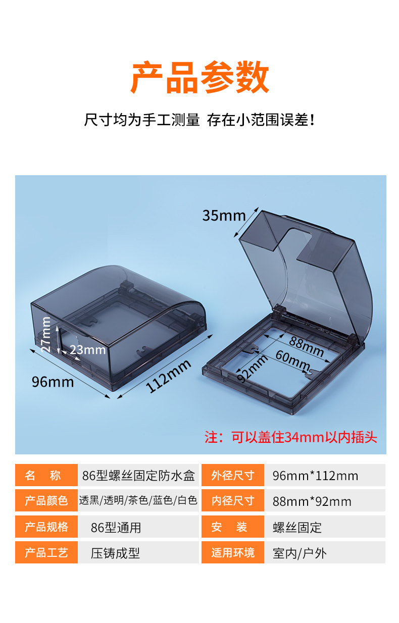 86型浴室スイッチトイレコンセント防水ボックス防水カバーコンセント保護カバー透明明装防スパッタリングボックス