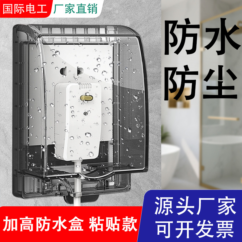 国际电工86型加高插座防溅盒粘贴式浴室卫生间热水器漏保防水盒