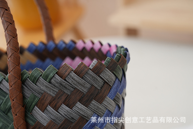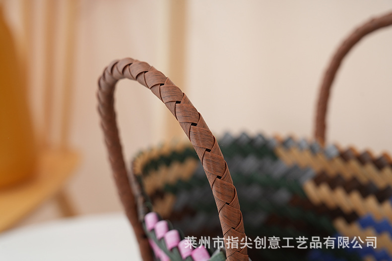 編みカラーPPハンドバッグ大容量満月手作り編みバスケットお返し収納バスケットプラスチック編み花バスケット卸売
