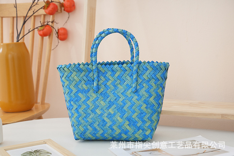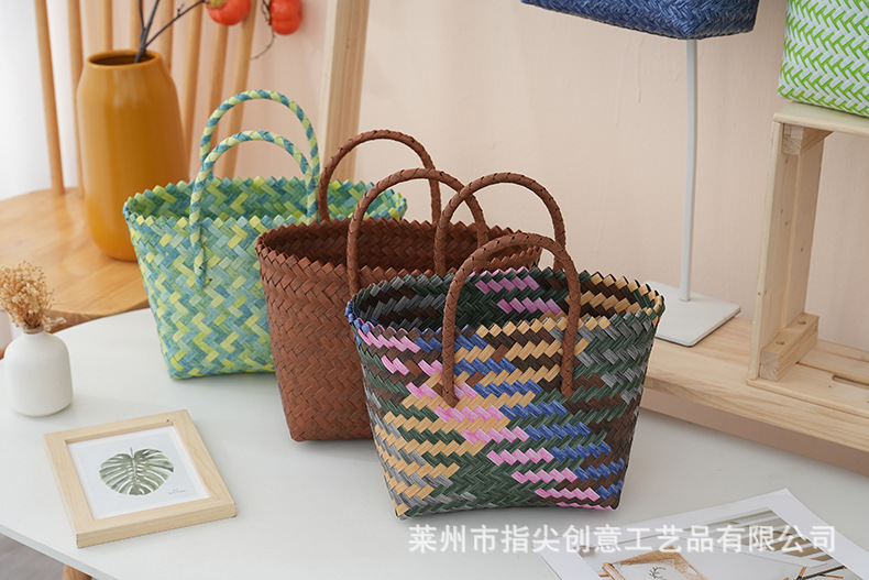カラフルな斜めの野菜バスケットpe編み結婚祝日お土産バッグ大容量子供バスケットピクニックバッグ