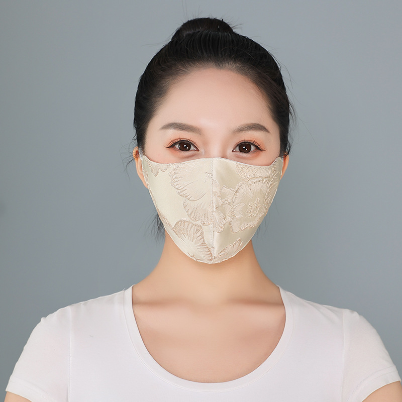 刺繍宮廷風秋冬ネット赤同マスク女神日焼け止め3d立体女性ジャカード痩せ顔小V顔