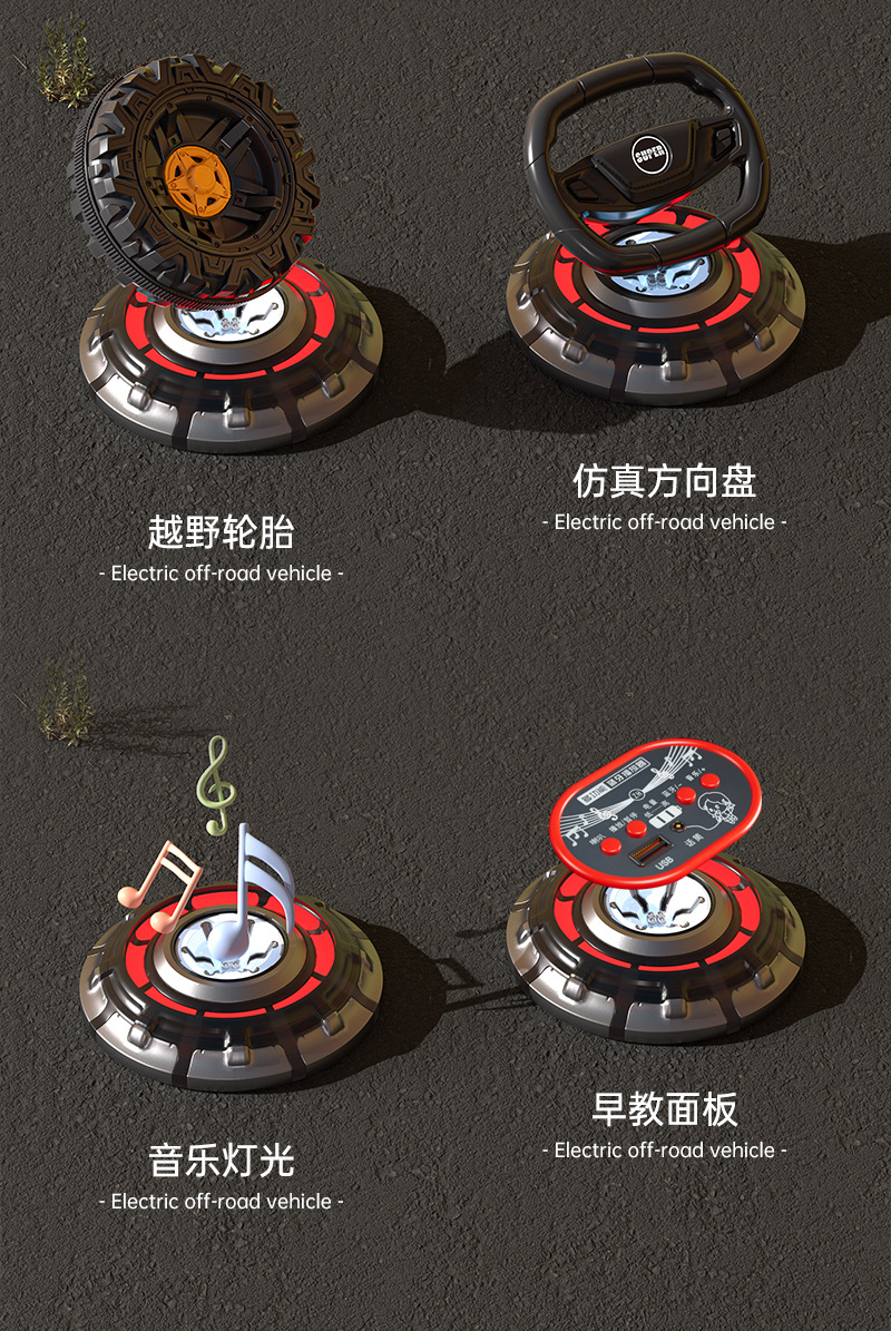 子供の電気自動車は二人の四輪に乗ることができます。