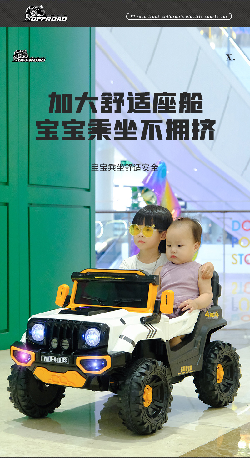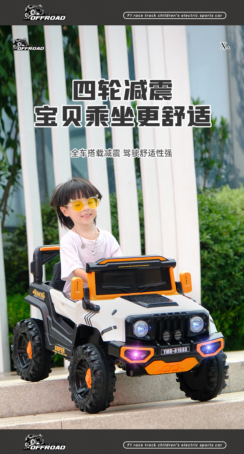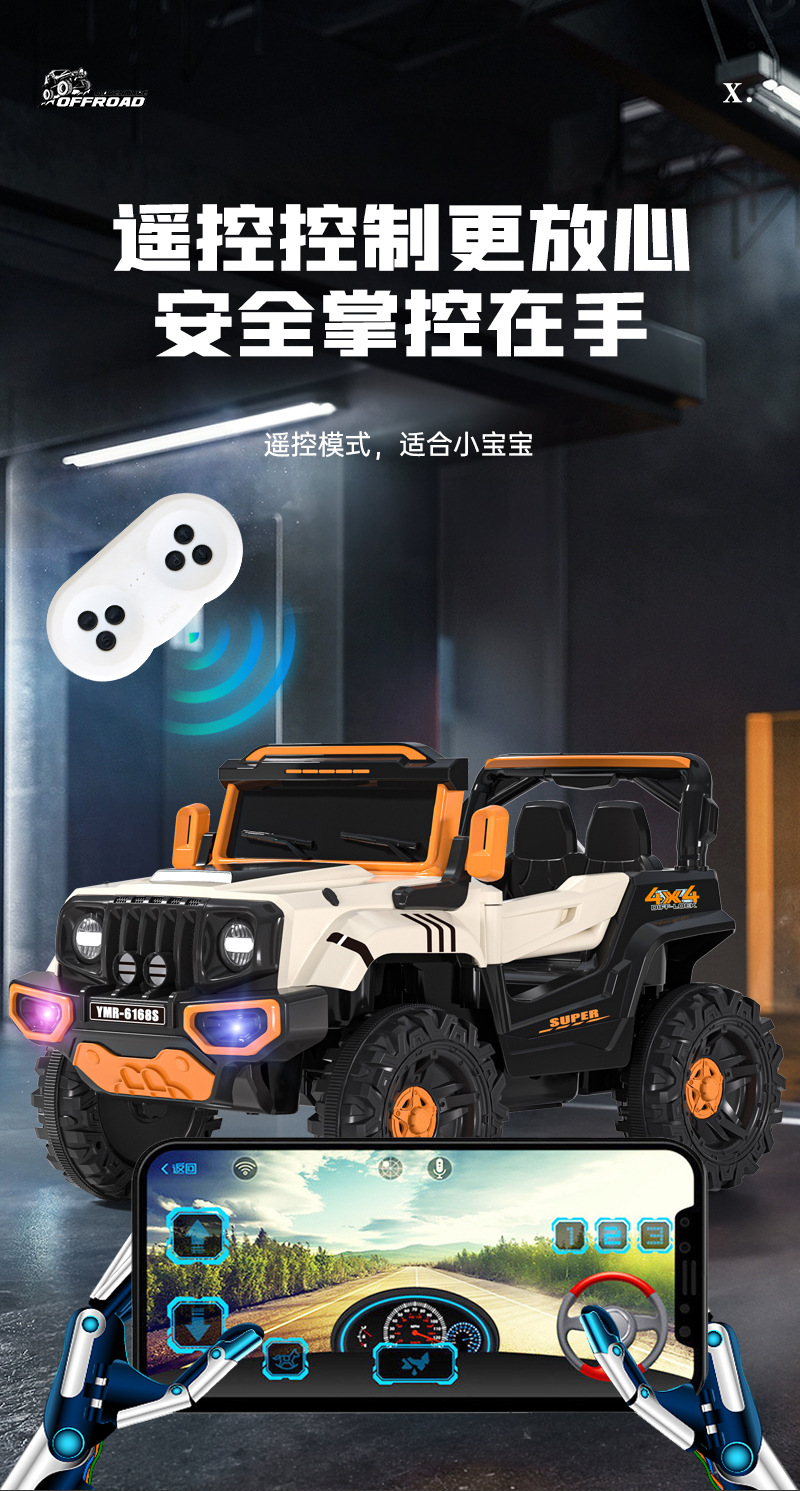 子供用電動四輪車、オフロードカー、男女兼用、赤ちゃんが座れる、充電式バッテリー、リモコン付きオフロードカー