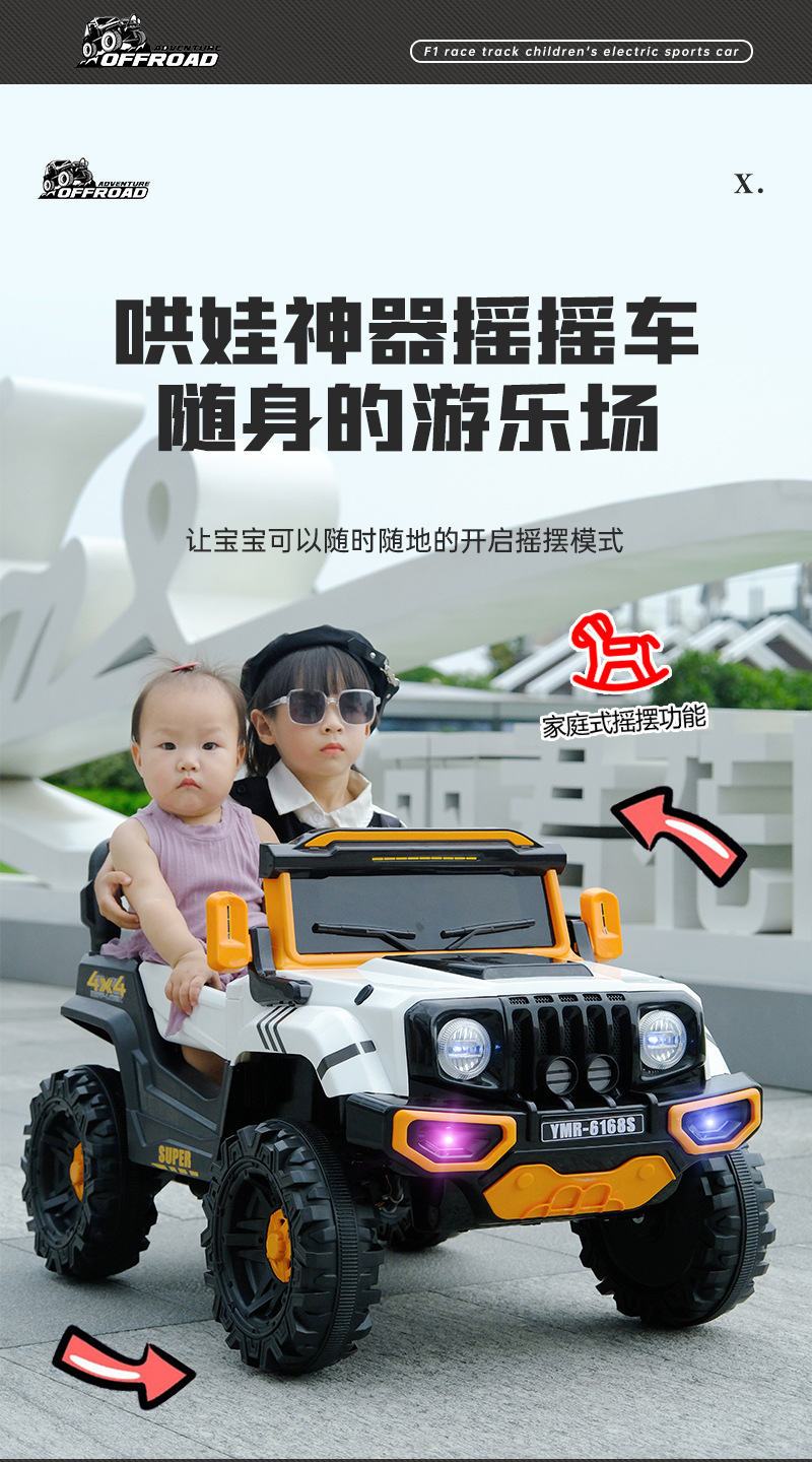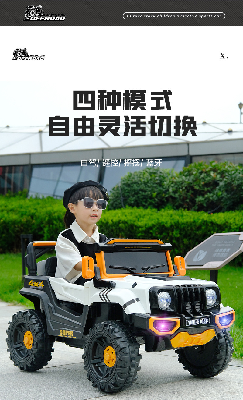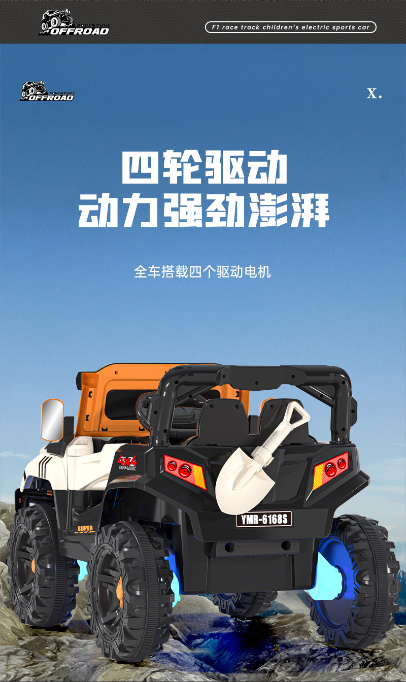 子供用電動四輪車、オフロードカー、男女兼用、赤ちゃんが座れる、充電式バッテリー、リモコン付きオフロードカー