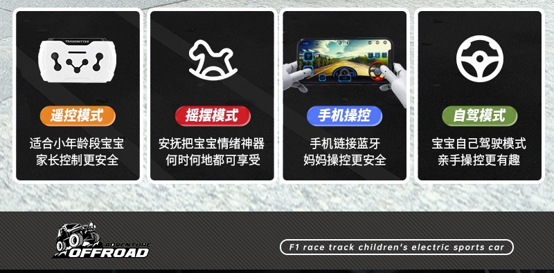 子供の電気自動車の四輪はリモコンのおもちゃの車を持っています。
