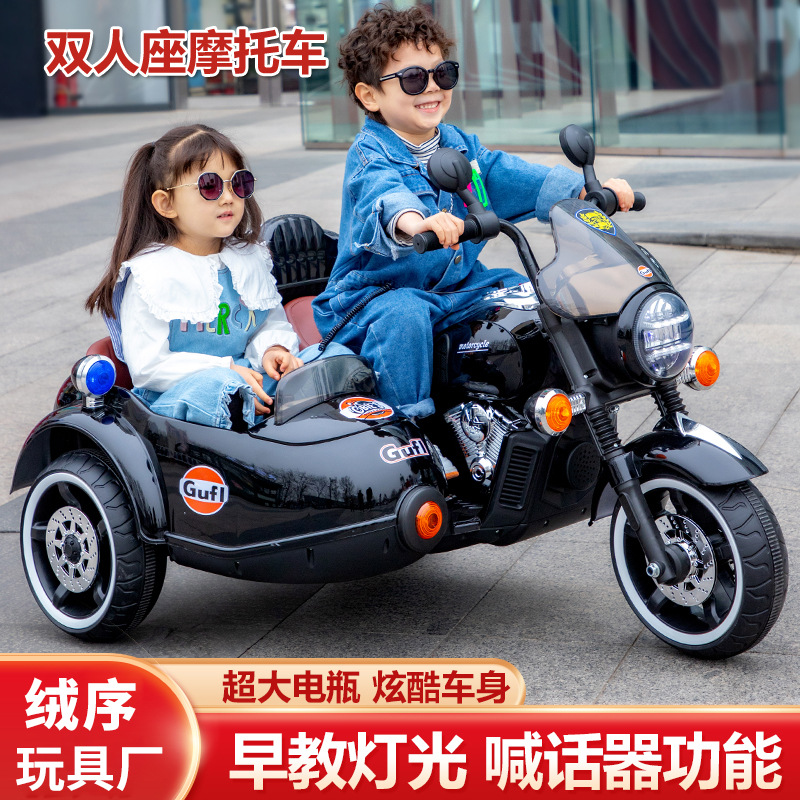 儿童电动摩托车带挎斗三轮车双人可做亲子车可充电遥控玩具车童车