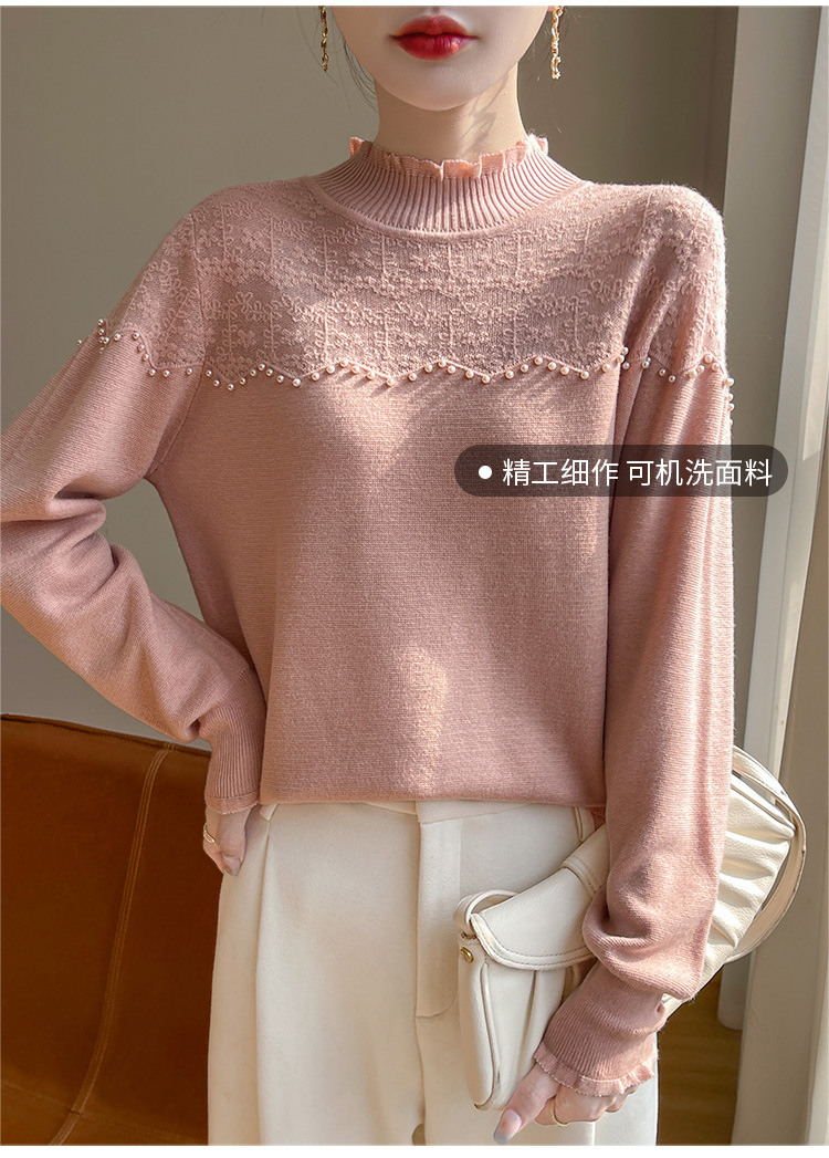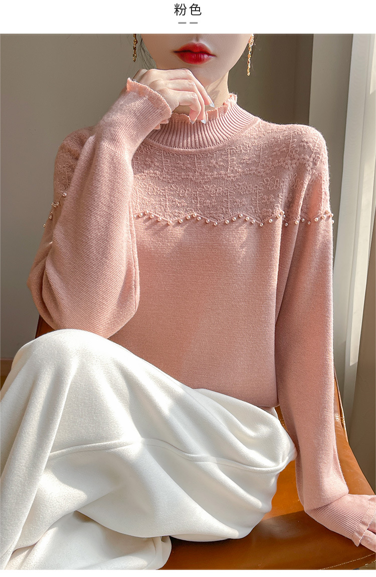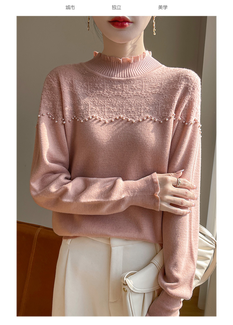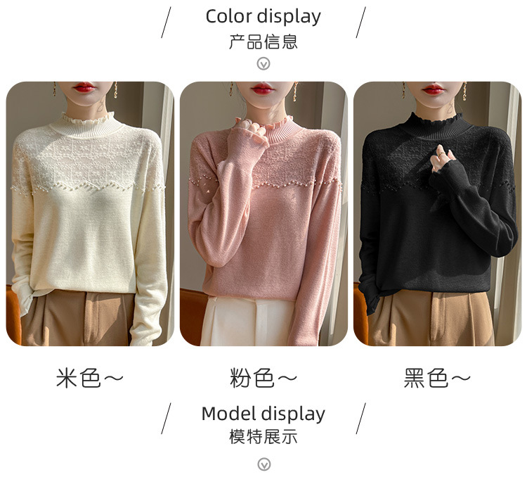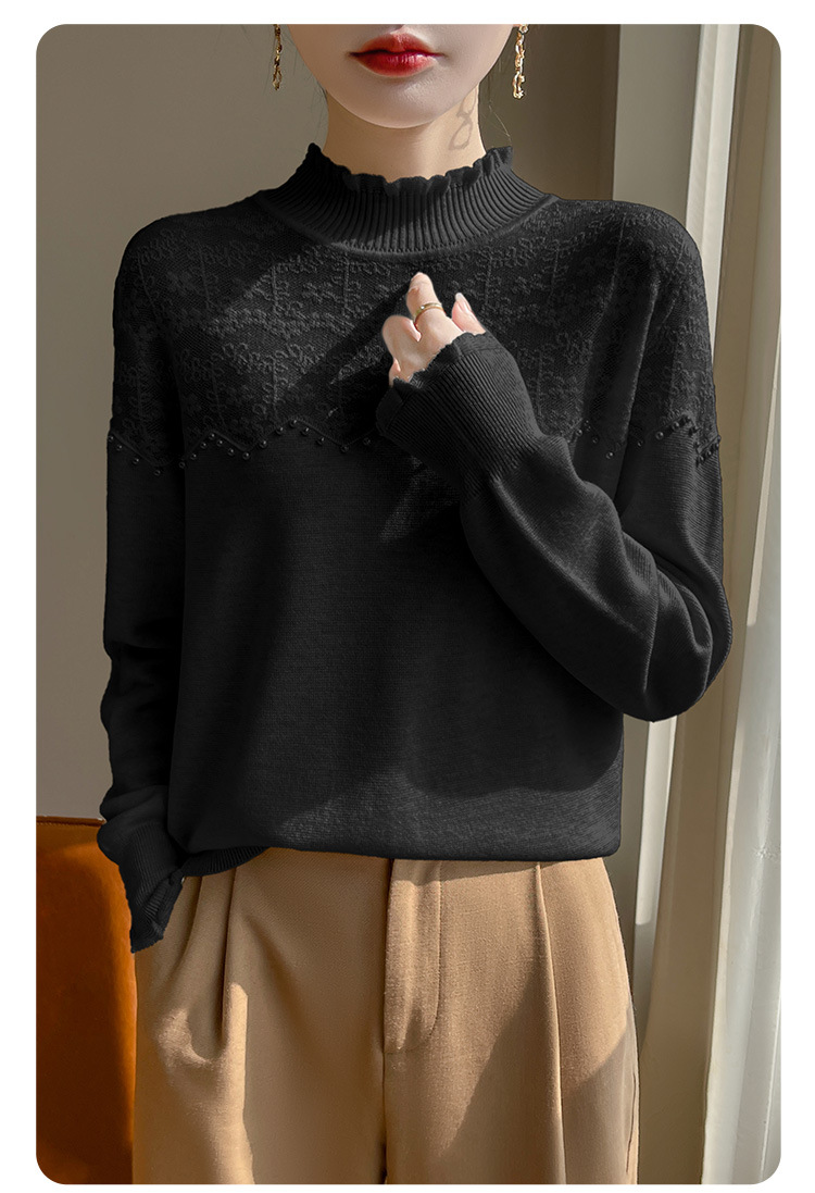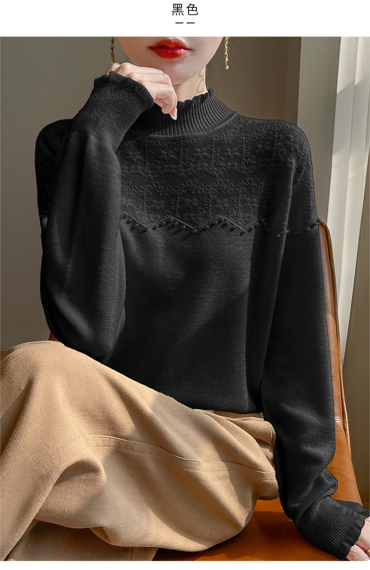 女装秋冬半高襟ニットセーター透かし彫りジャカード長袖ニットセーター