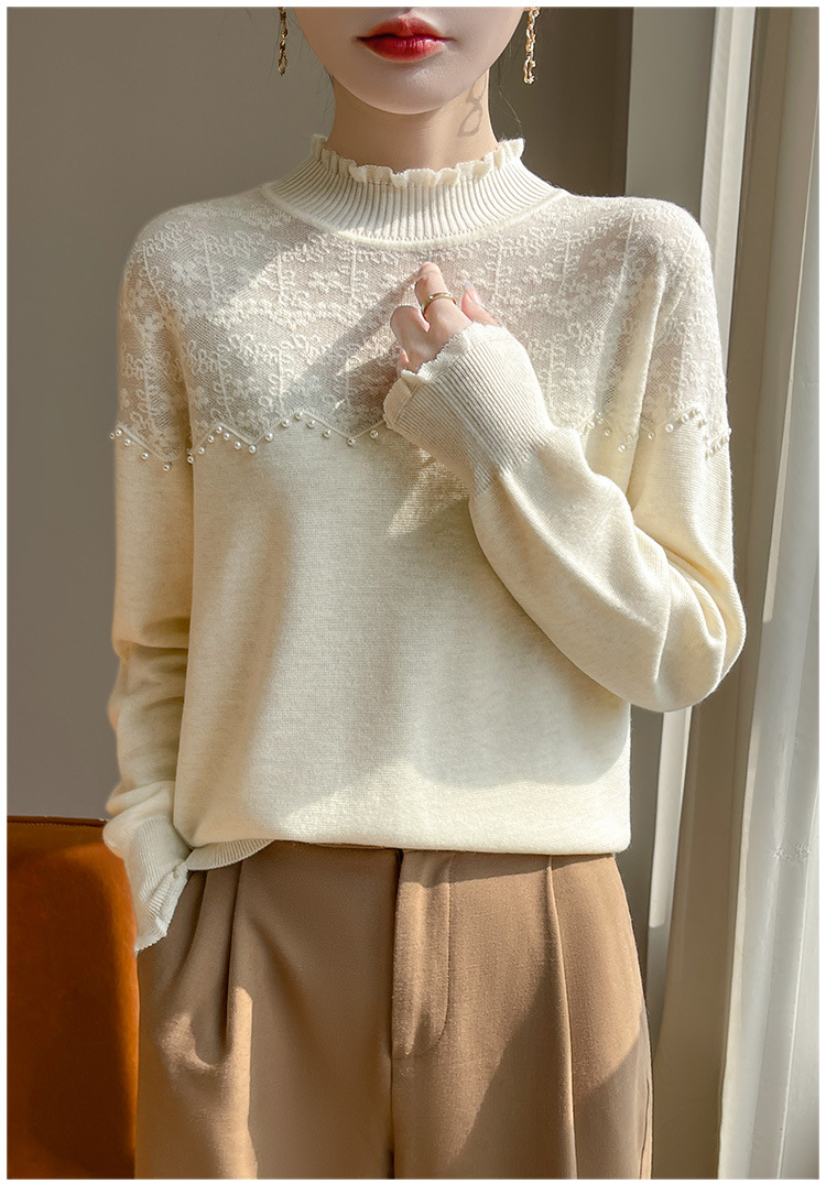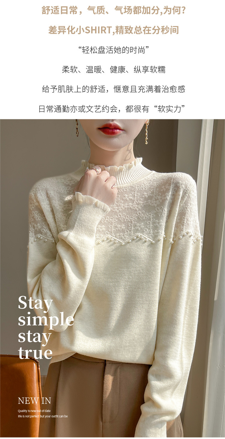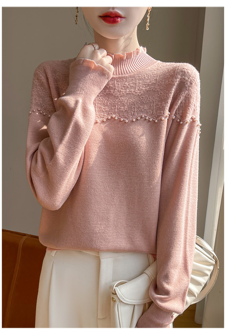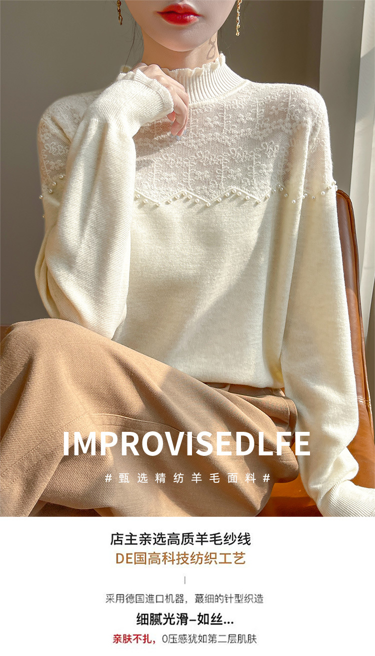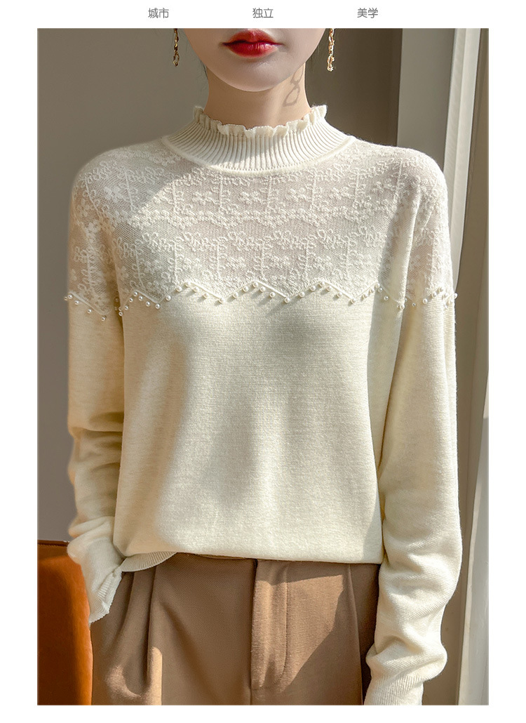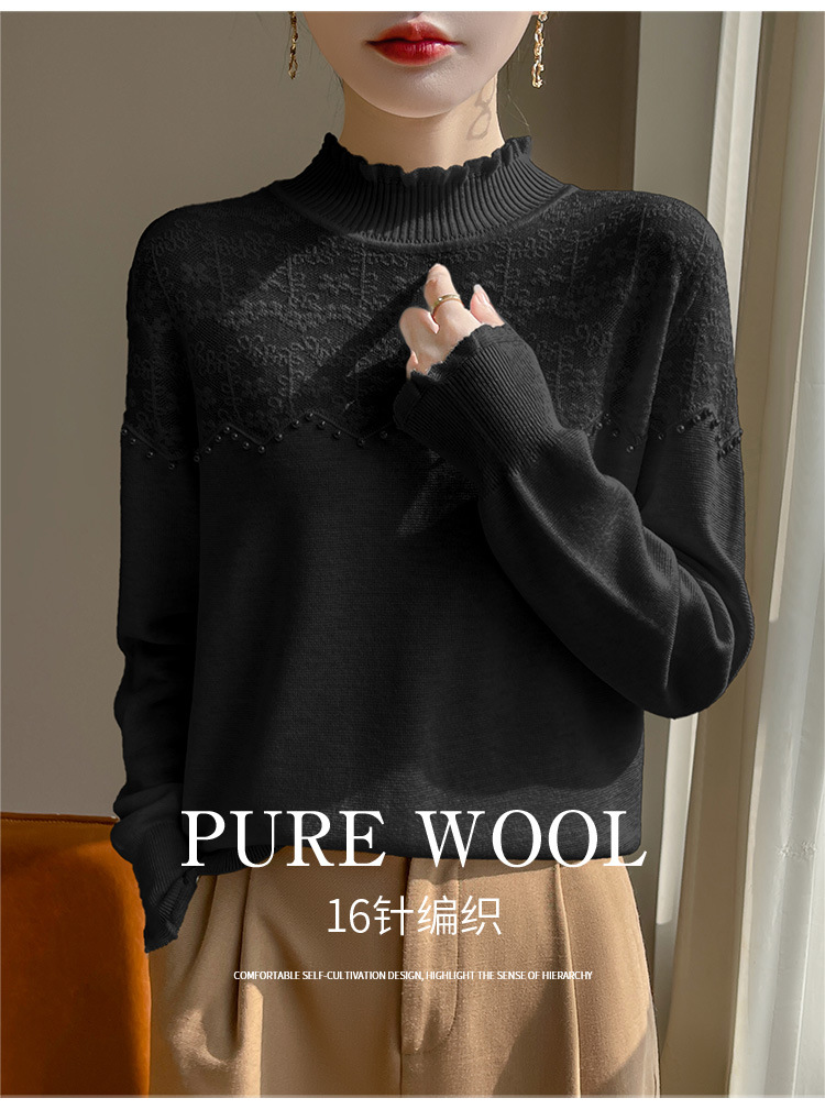 女装秋冬半高襟ニットセーター透かし彫りジャカード長袖ニットセーター