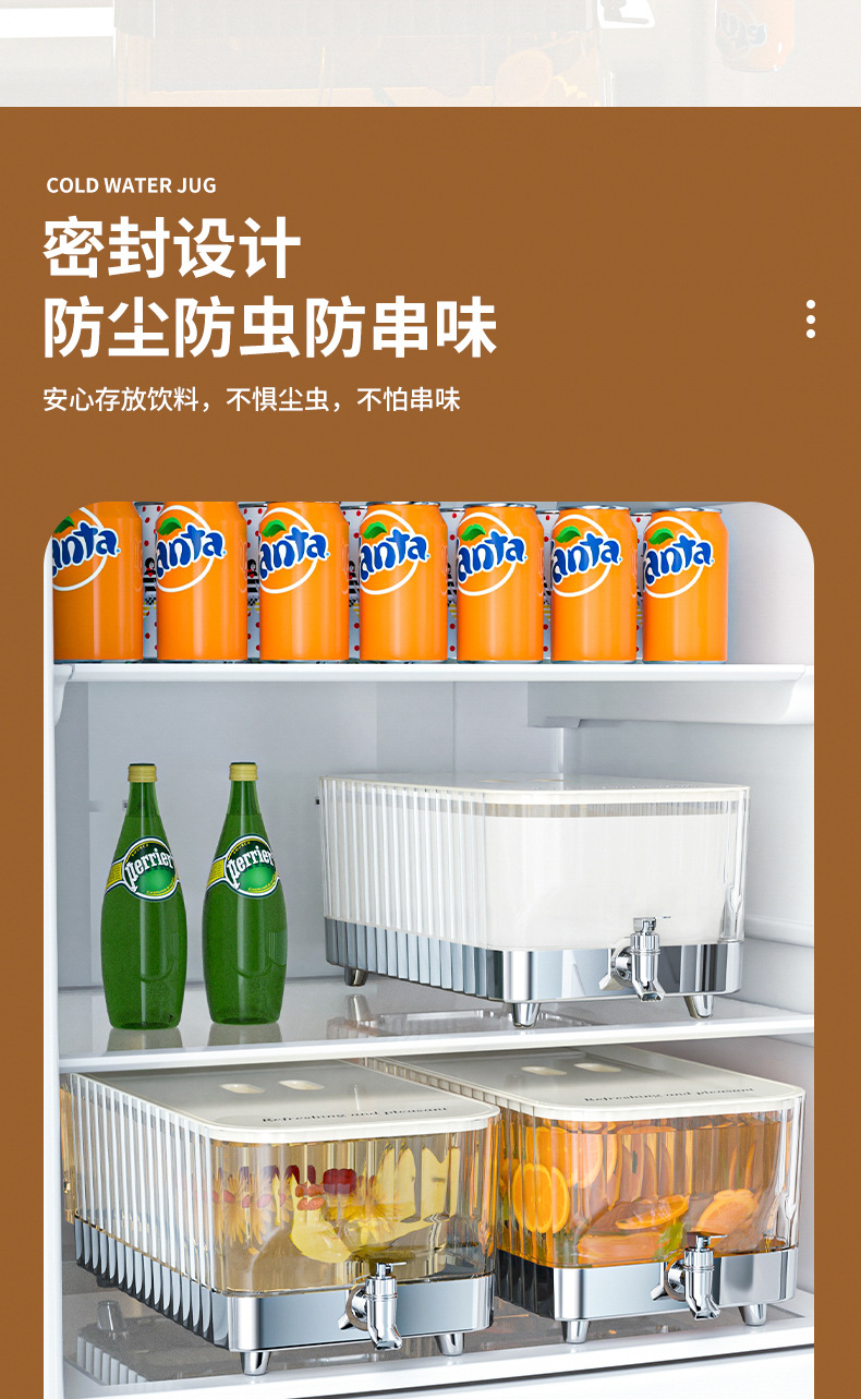 家庭用冷水ポット蛇口付き冷蔵庫大容量挟み水筒食品級プラスチックジュース冷水水筒シール