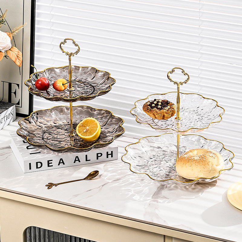 水のうねりのヨーロッパ式の簡単な果物の皿の軽くて豪華なケーキの棚のデザート台の客間のお茶のいくつかの乾いた果物の皿の創意の果物の皿
