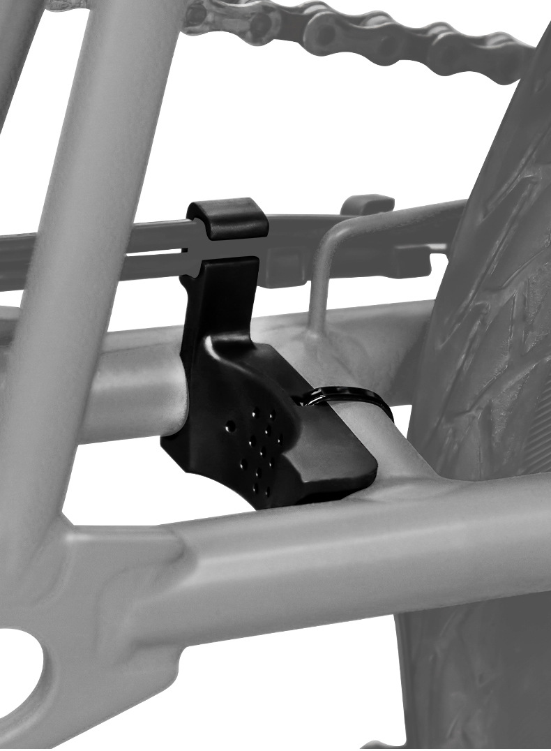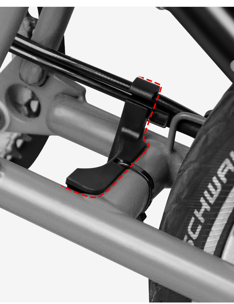 安装止动块后,可有效防止折叠和推动过程中部件松动或散落,确保自行车在折叠和运输过程中保持稳定和安全。该装置还具有将自行车线缆牢牢固定的附加功能。