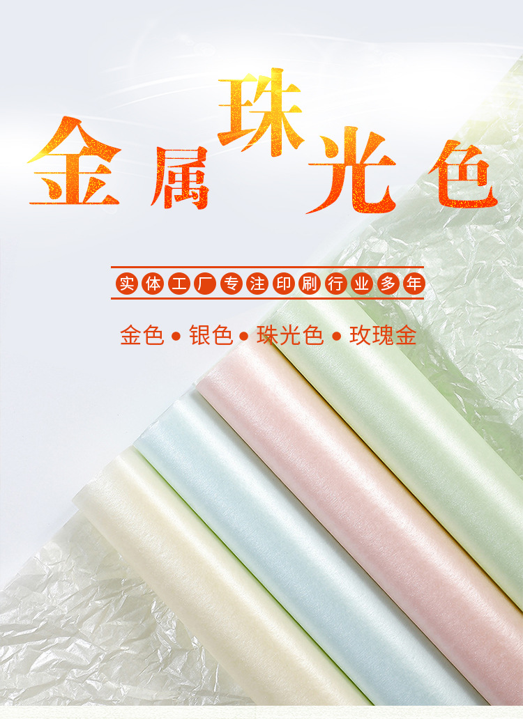 真珠光沢のある金、銀、赤、緑、黄、黒、青の色の硫酸紙、バターペーパー 110 グラム、フルサイズ