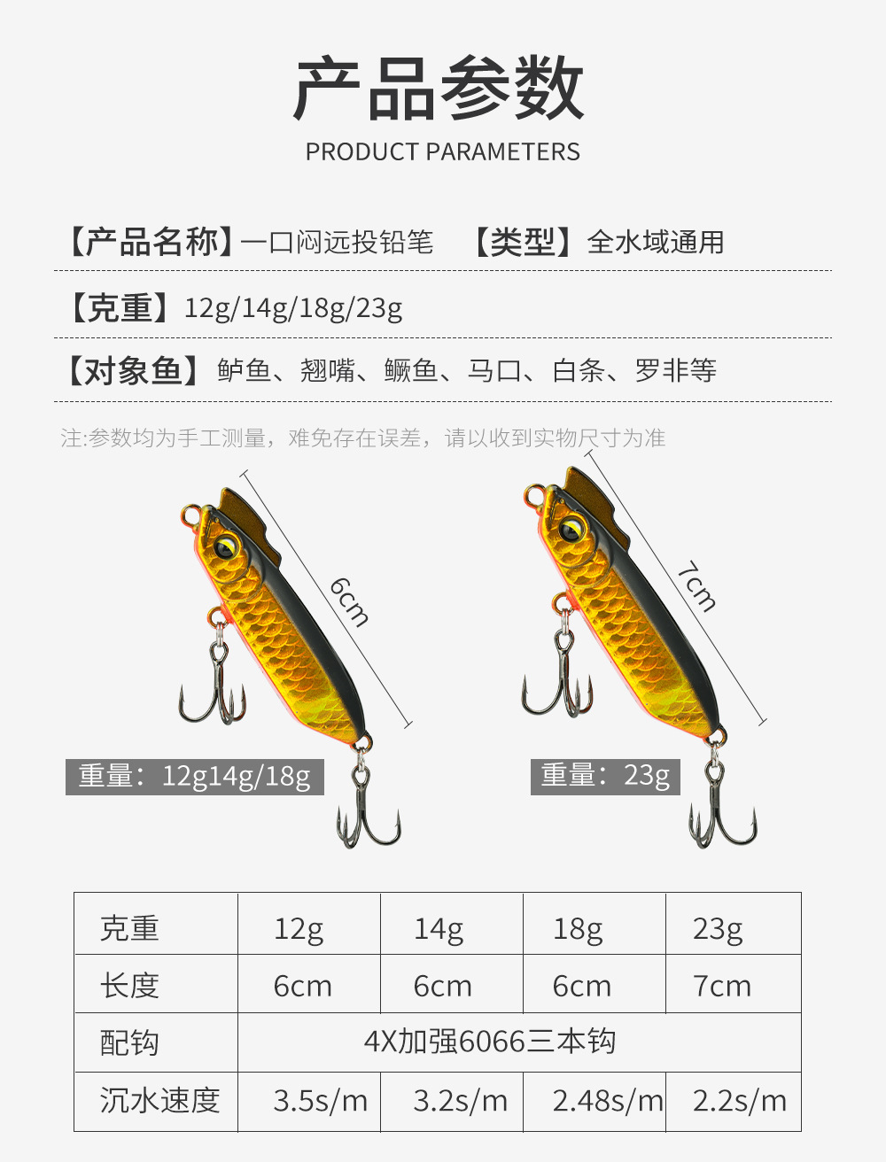 路亚饵超远投铅笔辣子鸡半截棍颤沉仿生饵全泳层野钓黑坑翘嘴鱤鱼
