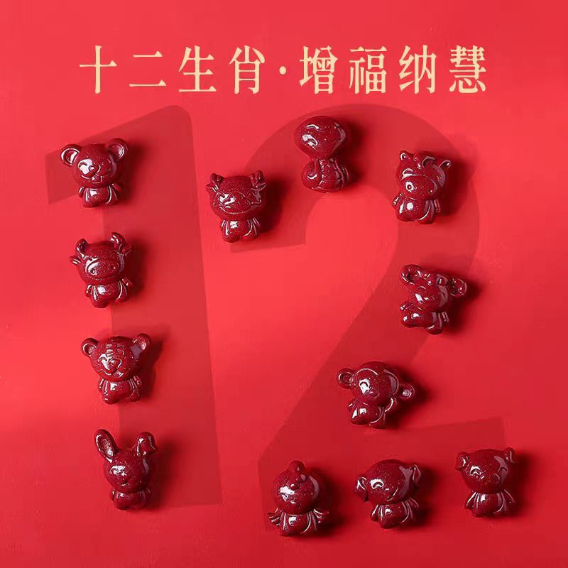 卸売り低含有量朱砂十二生肖散珠朱砂三合六合diyアクセサリー紫金砂手串部品