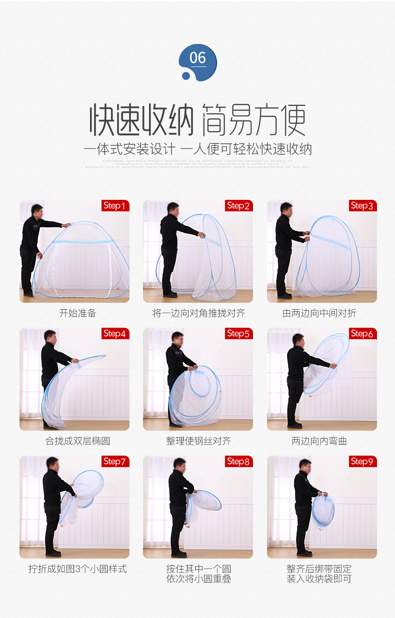 卸売 家庭用寝室設置不要モンゴル包蚊帳 折りたたみ式蚊帳 シンプルスタイル 学生用蚊帳 家庭用設置不要
