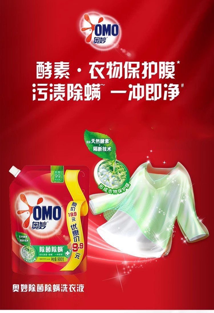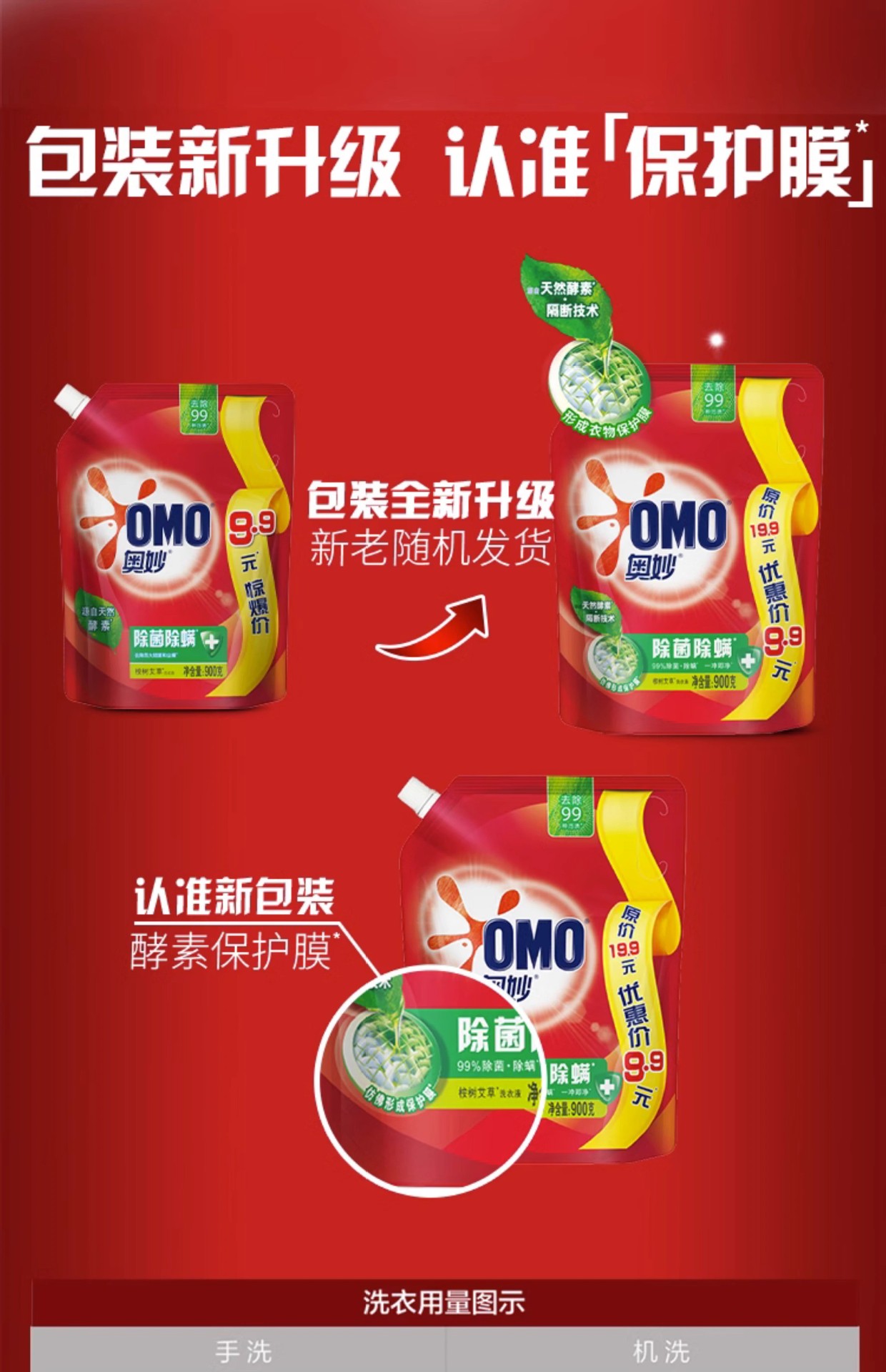 奥妙(OMO)洗衣液整箱批家用实惠装持久留香除菌除螨补充袋装