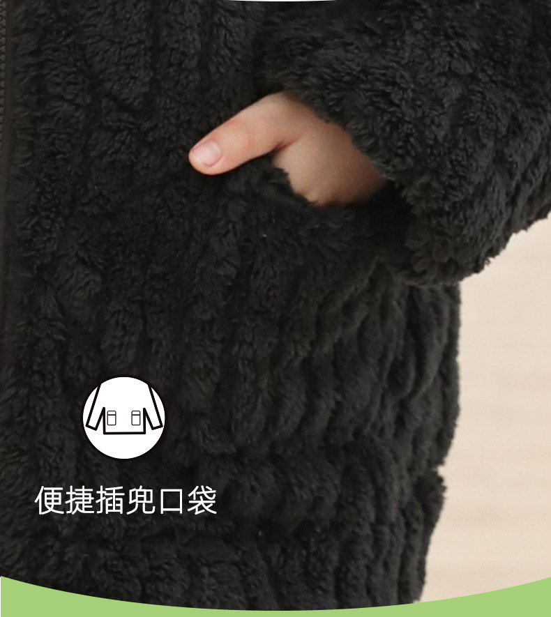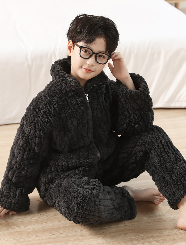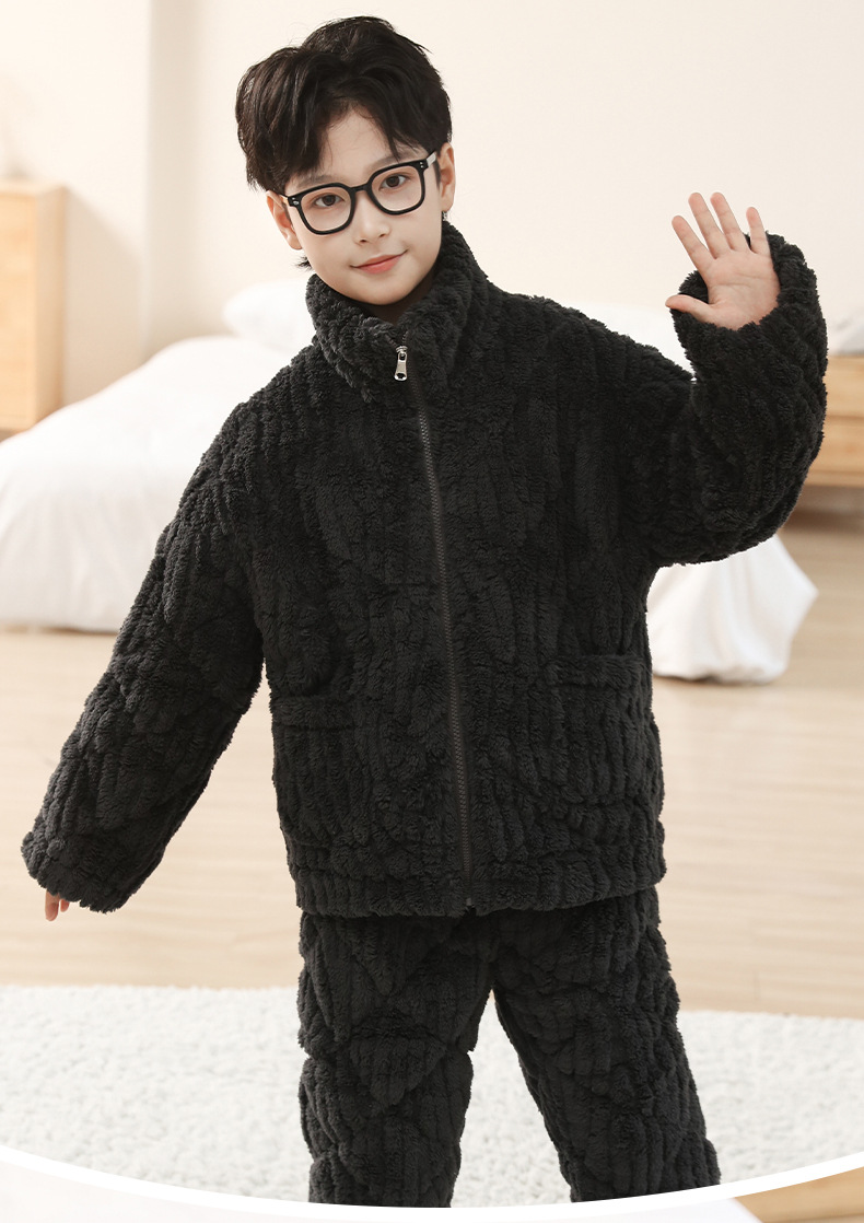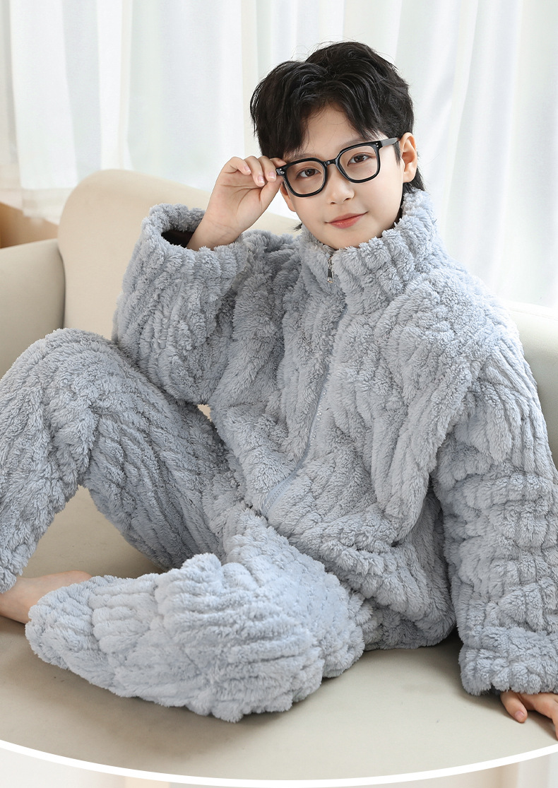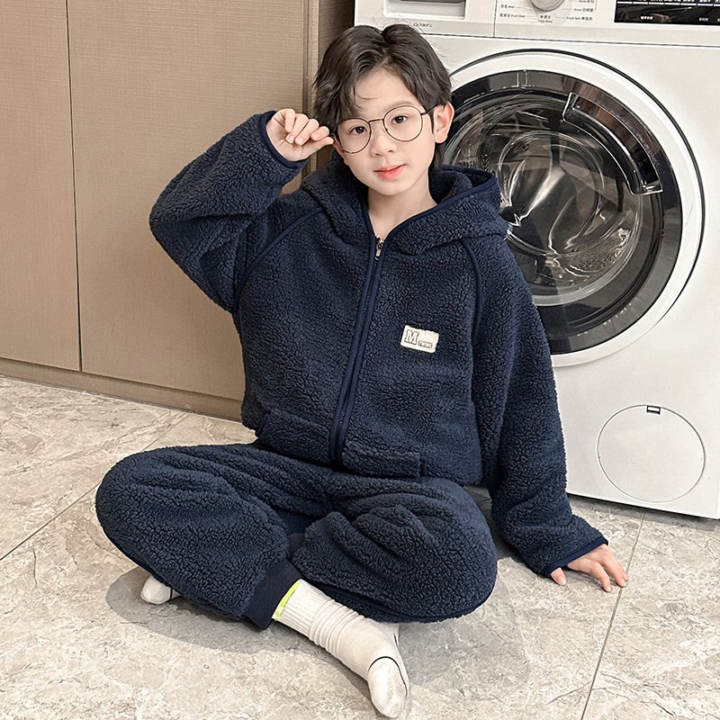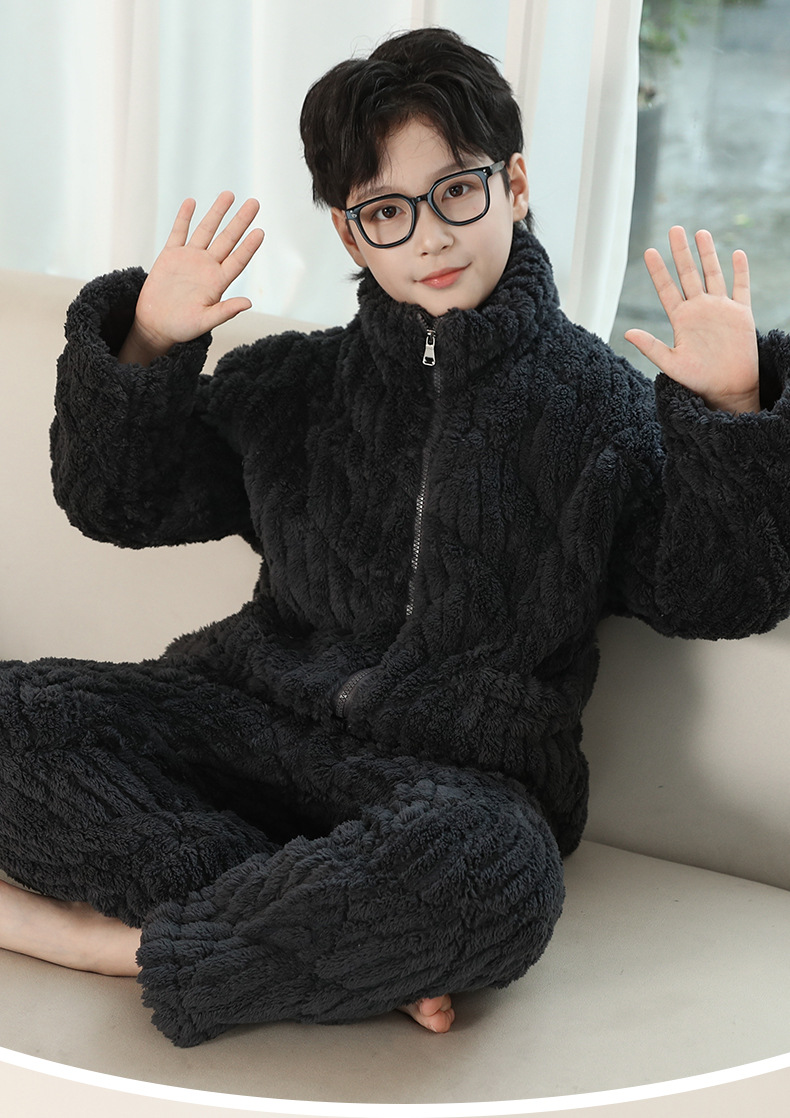 冬季新品北羔绒男童睡衣宽松套装男孩拉链加绒加厚外穿家居服大童