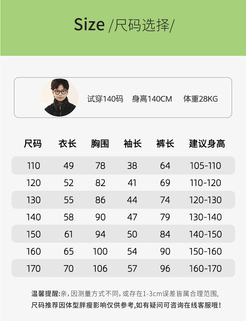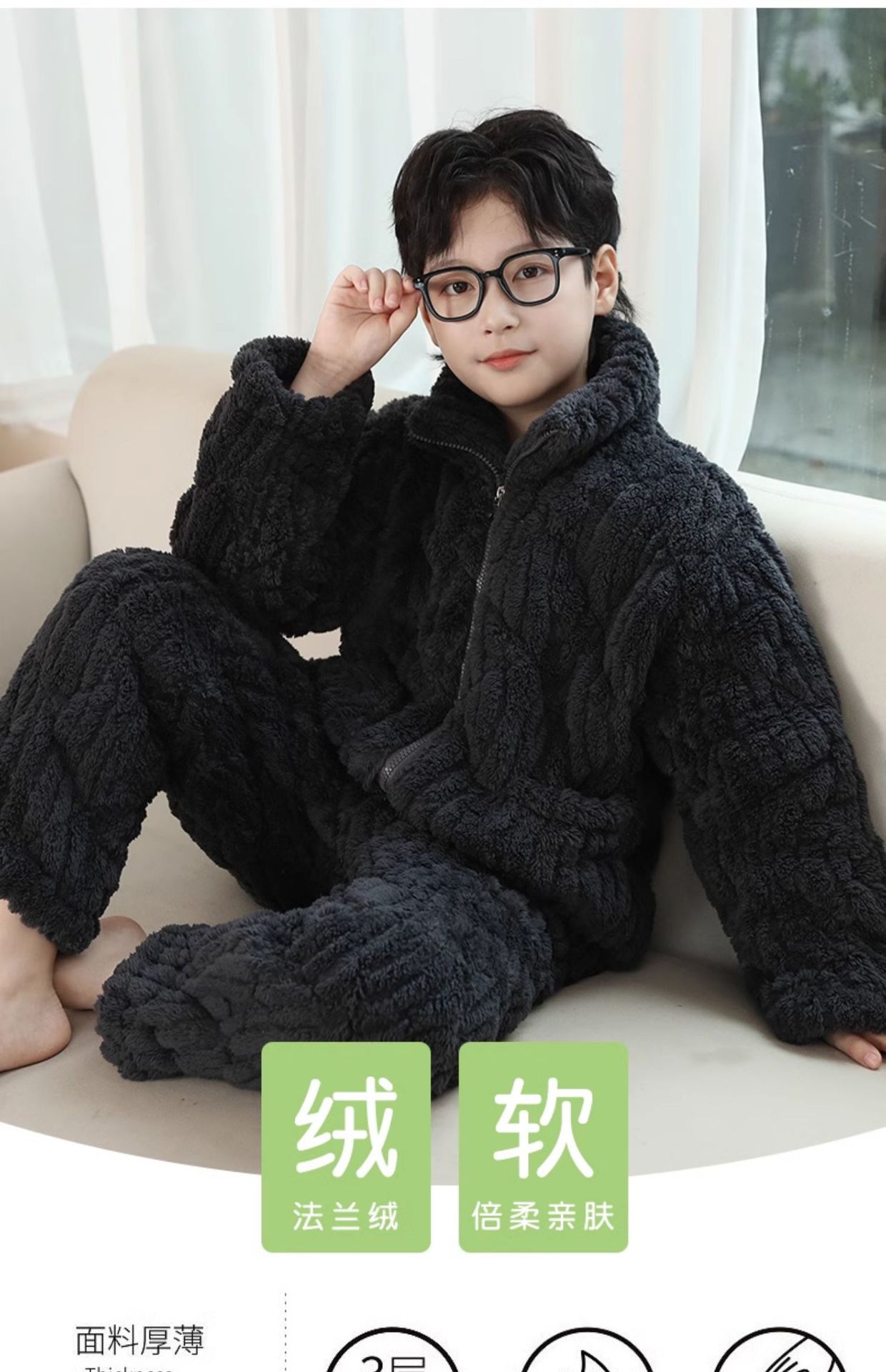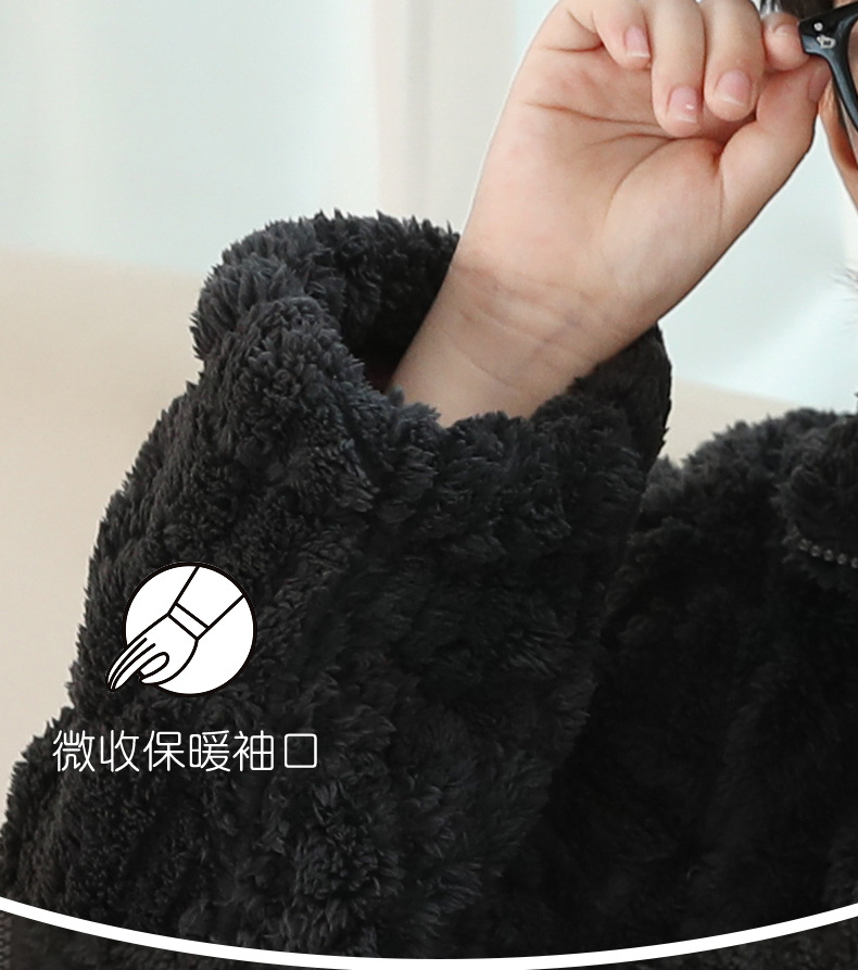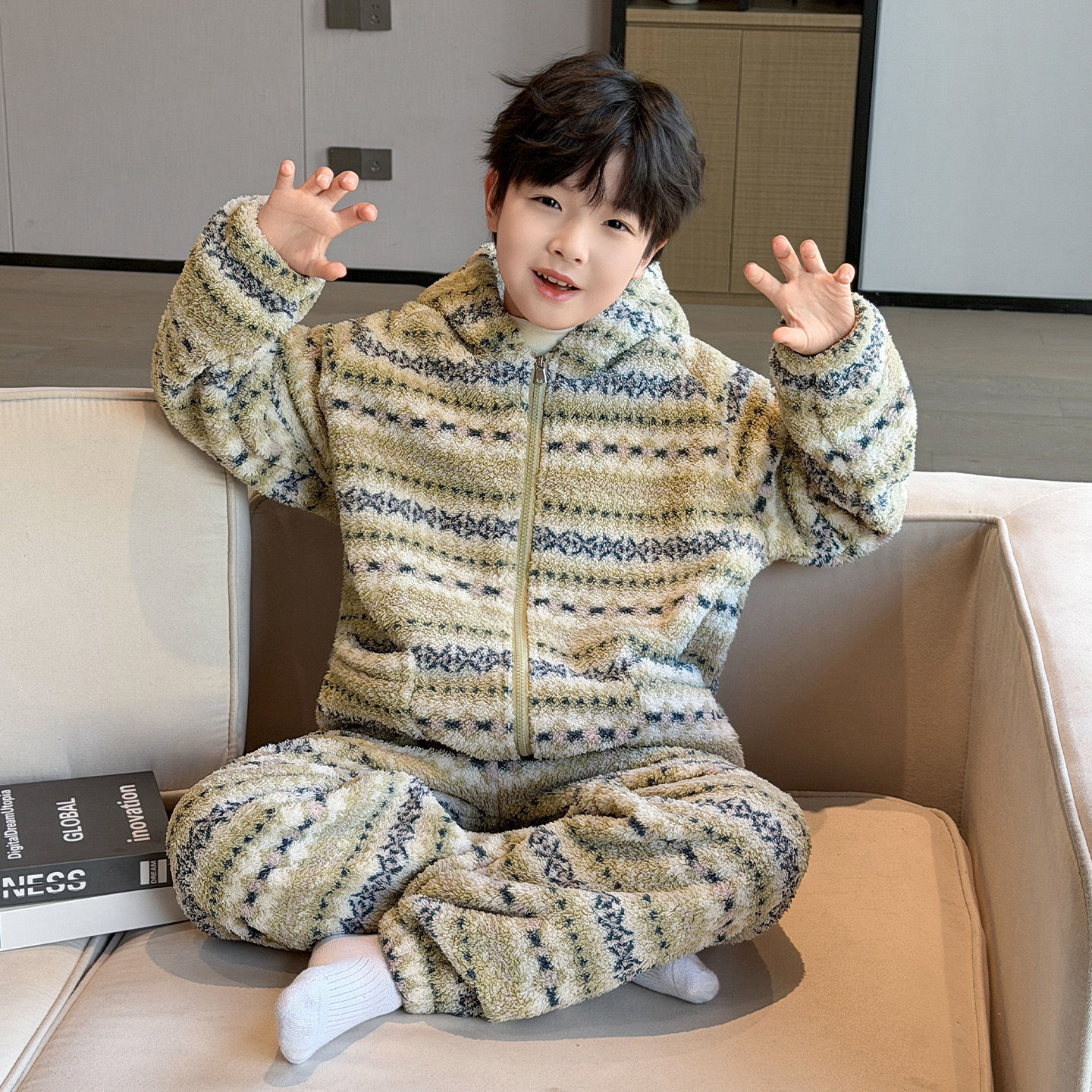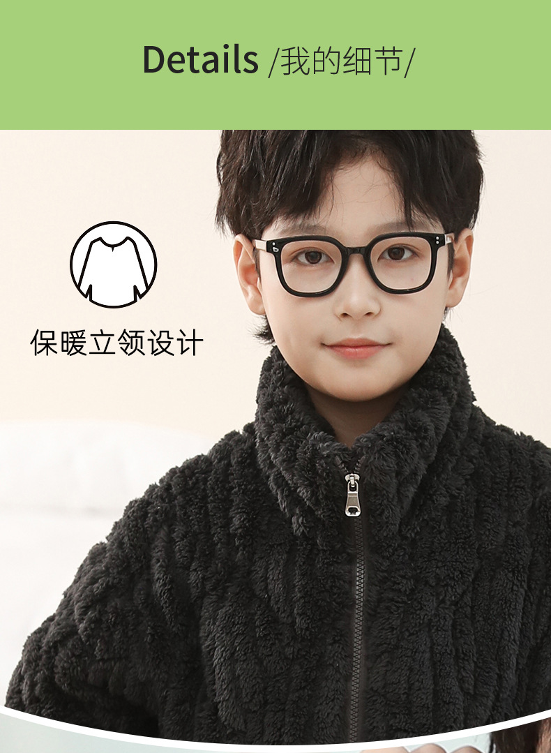 冬季新品北羔绒男童睡衣宽松套装男孩拉链加绒加厚外穿家居服大童