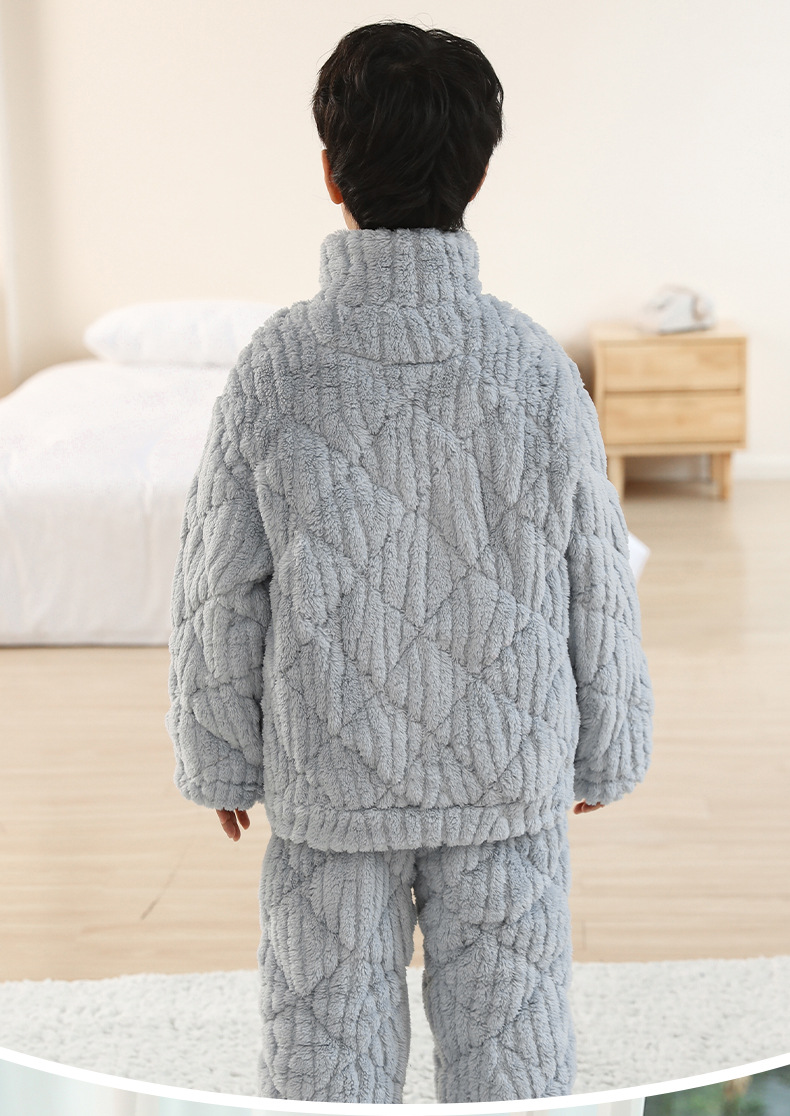 子供用パジャマ男の子フランネル秋冬保温家庭服中の子供の男の子は厚手でスーツとベルベットを着ている
