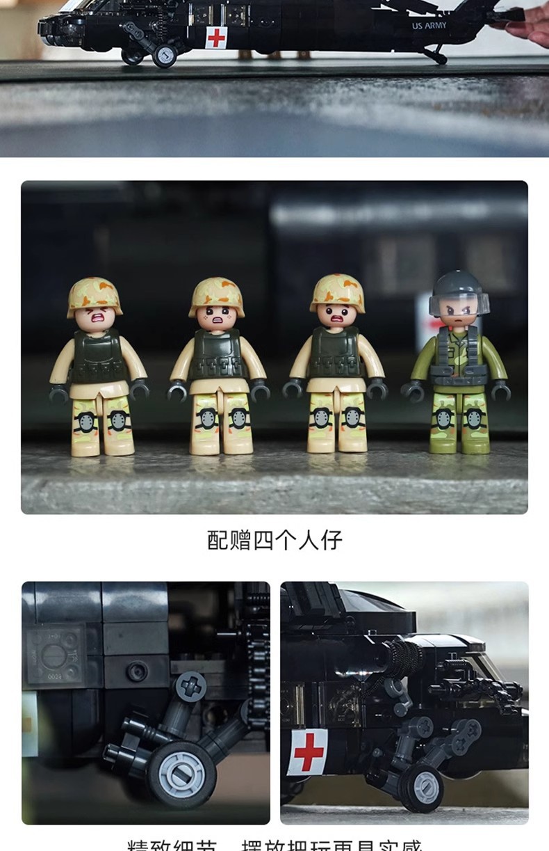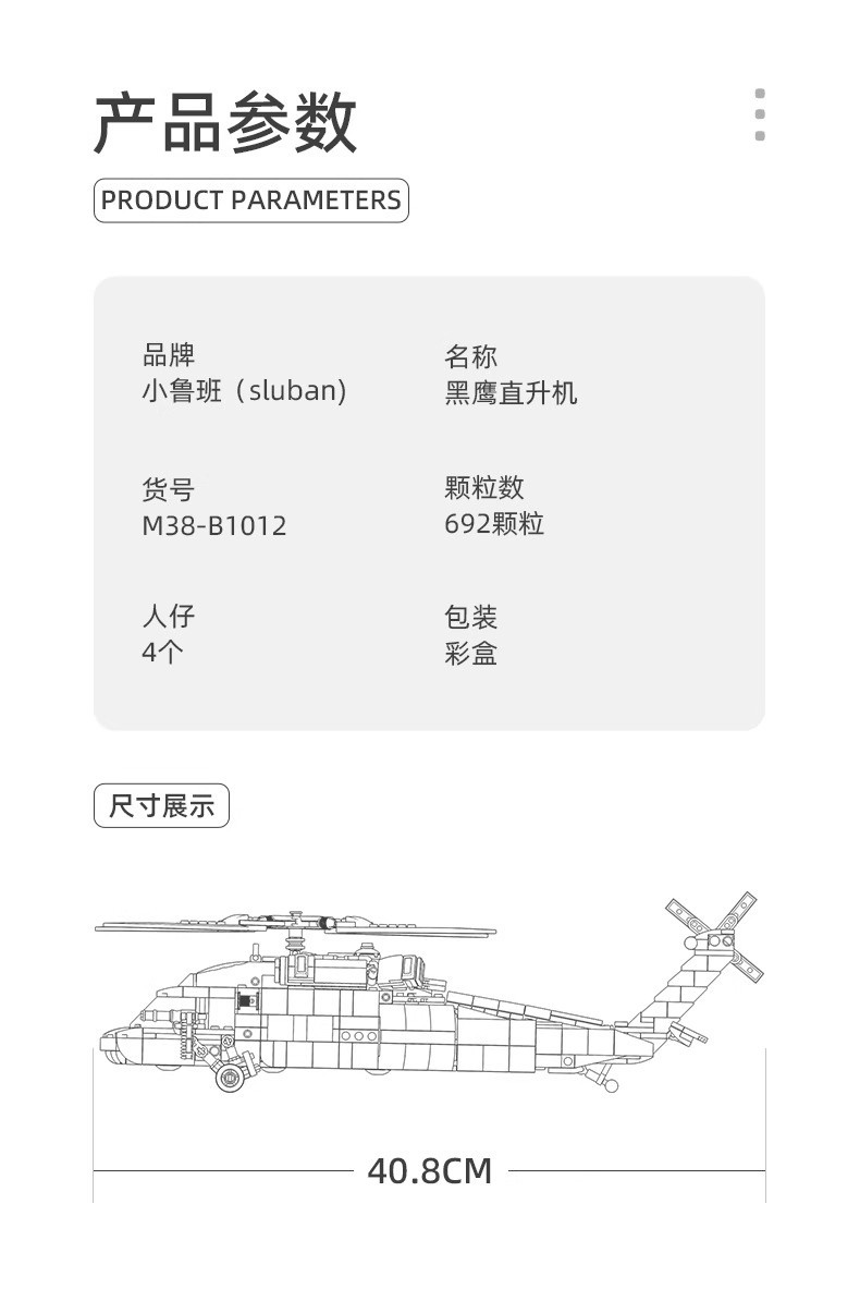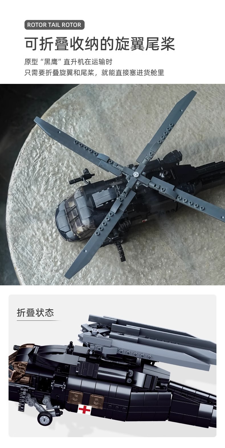 小魯班黒鷹ヘリ1012は積み木のおもちゃの益智をつづり合わせて男の子の子供のおもちゃの誕生日プレゼントを作ります。