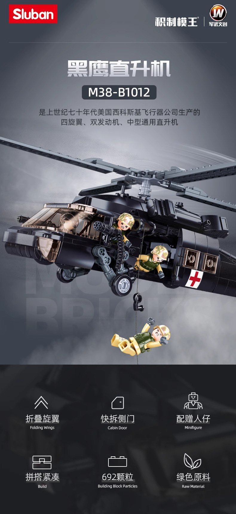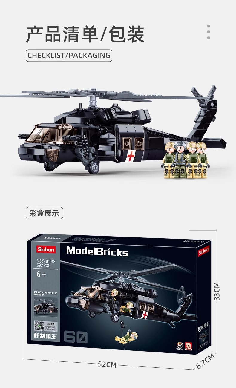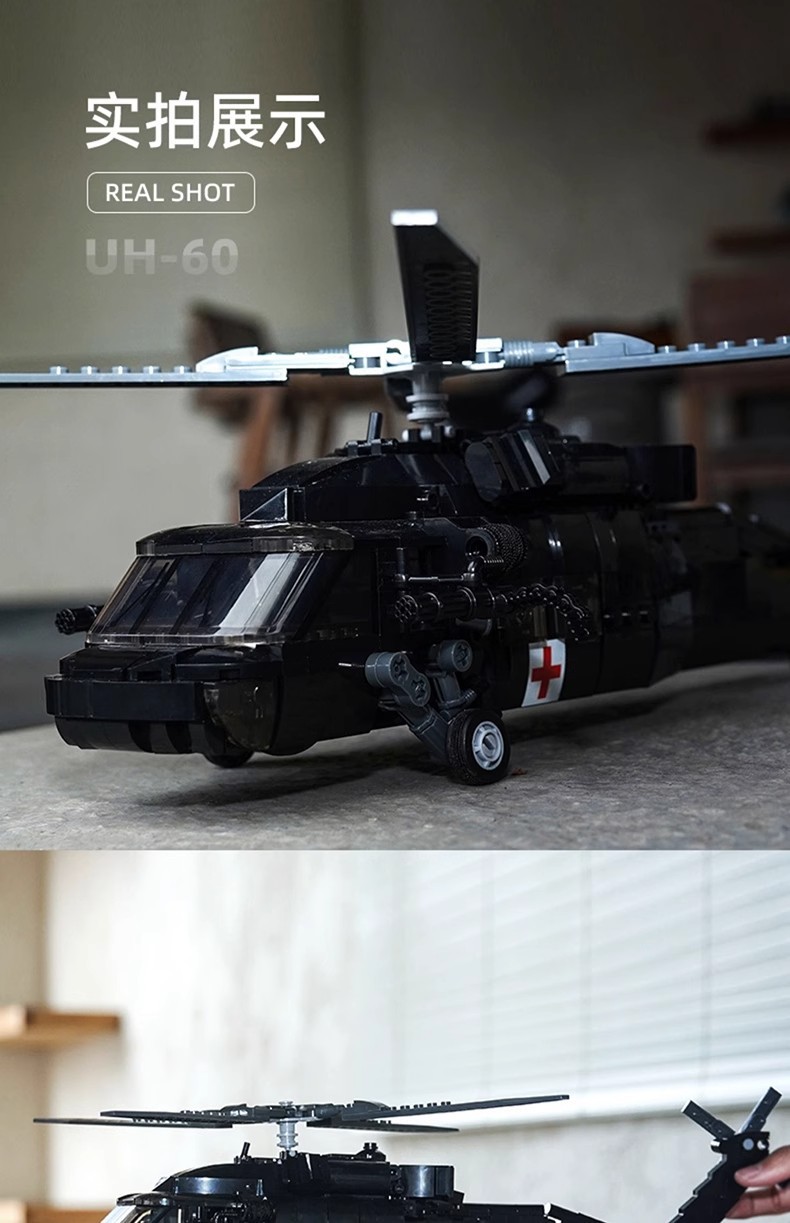 小魯班黒鷹ヘリ1012は積み木のおもちゃの益智をつづり合わせて男の子の子供のおもちゃの誕生日プレゼントを作ります。