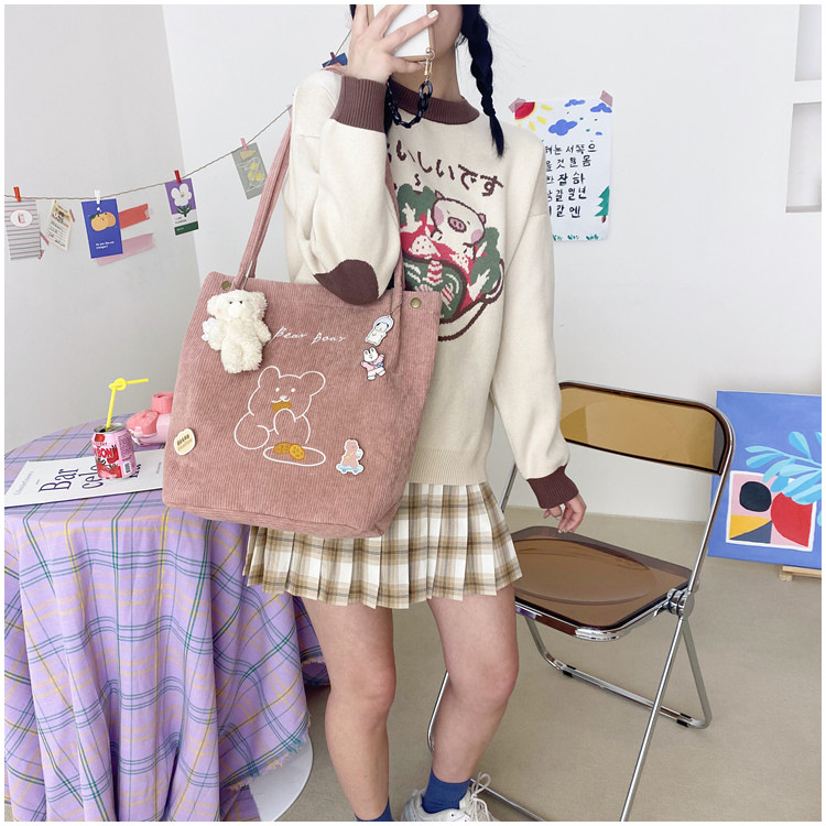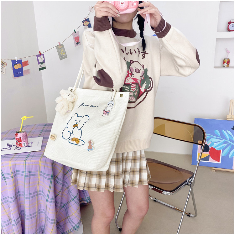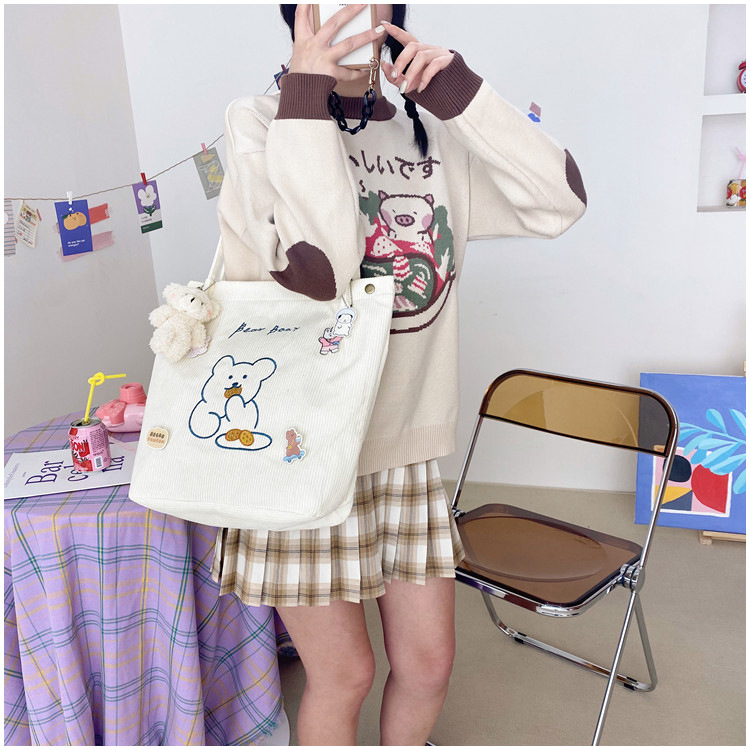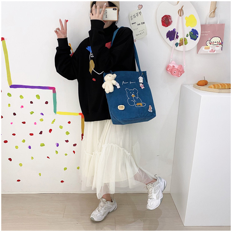 日本のかわいいキャンバスバッグ女性韓国版カジュアルショルダーバッグ