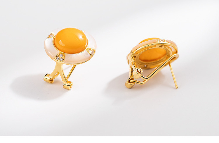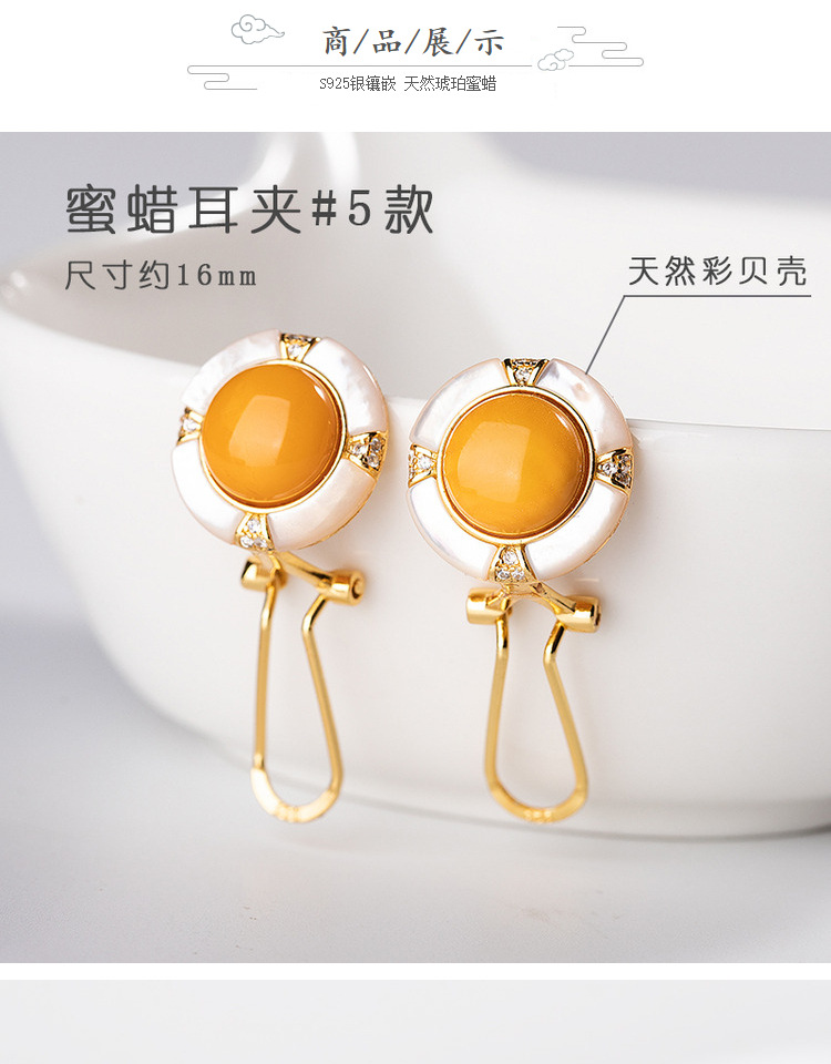 S925銀金メッキは天然琥珀鶏油黄蜜ろう血泊卵旦形国風耳クリップ耳飾り