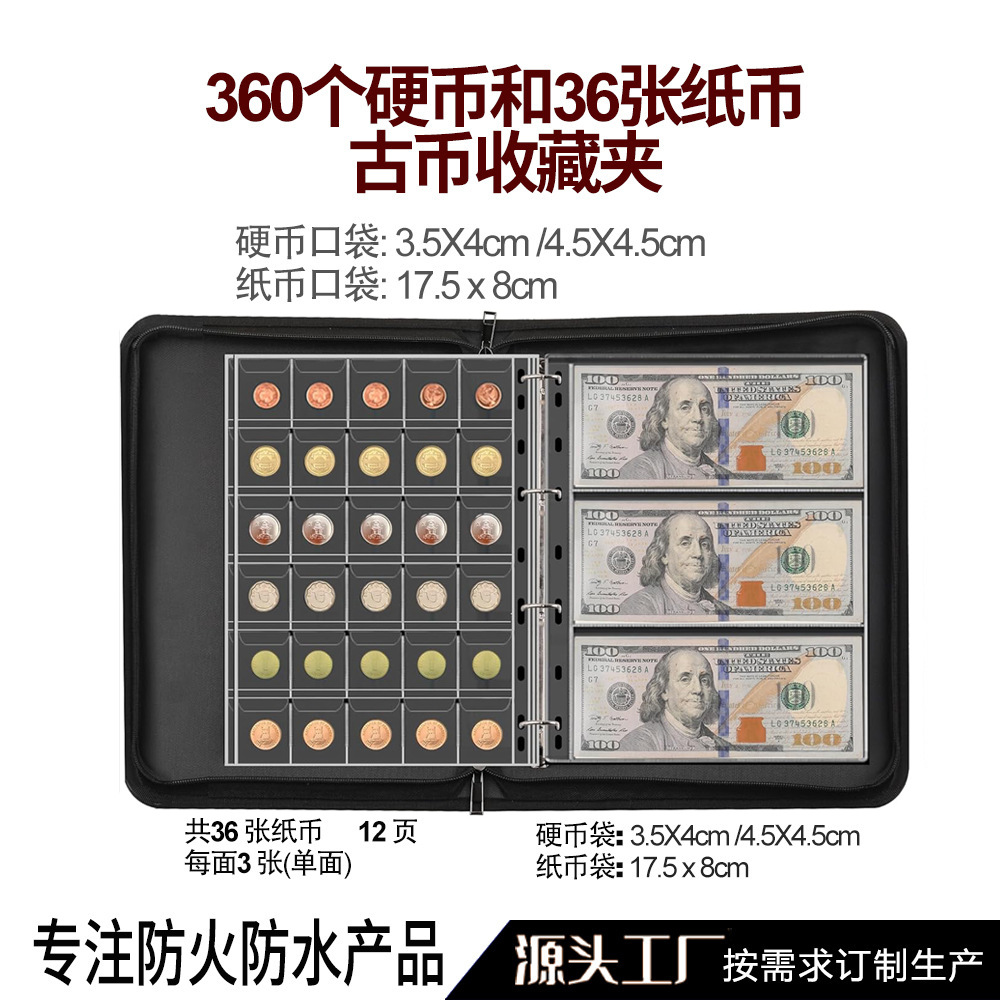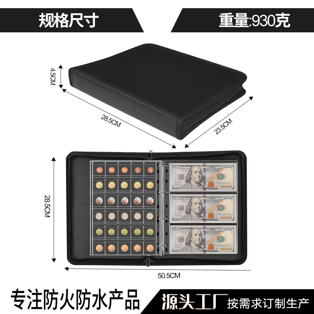 クロスボーダー専用黒防火ファイルファスナー付き財布小カード防水収納バッグ耐高温難燃性ファイル