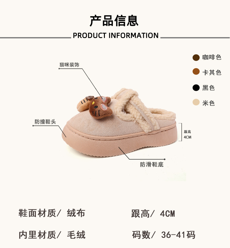 厚底增高防滑包头拖鞋女外穿2025秋冬新款可爱卡通小猫毛毛棉拖鞋