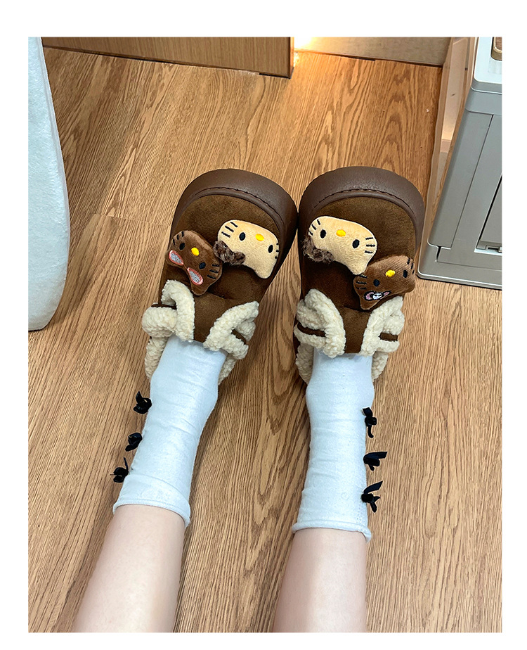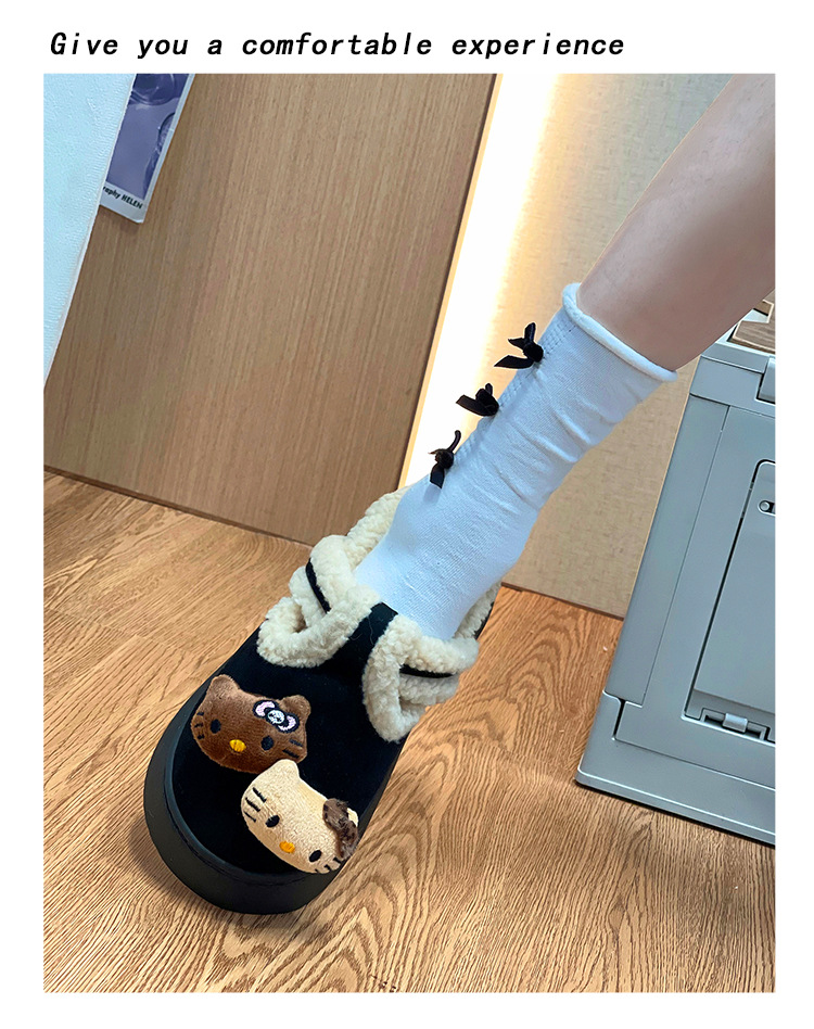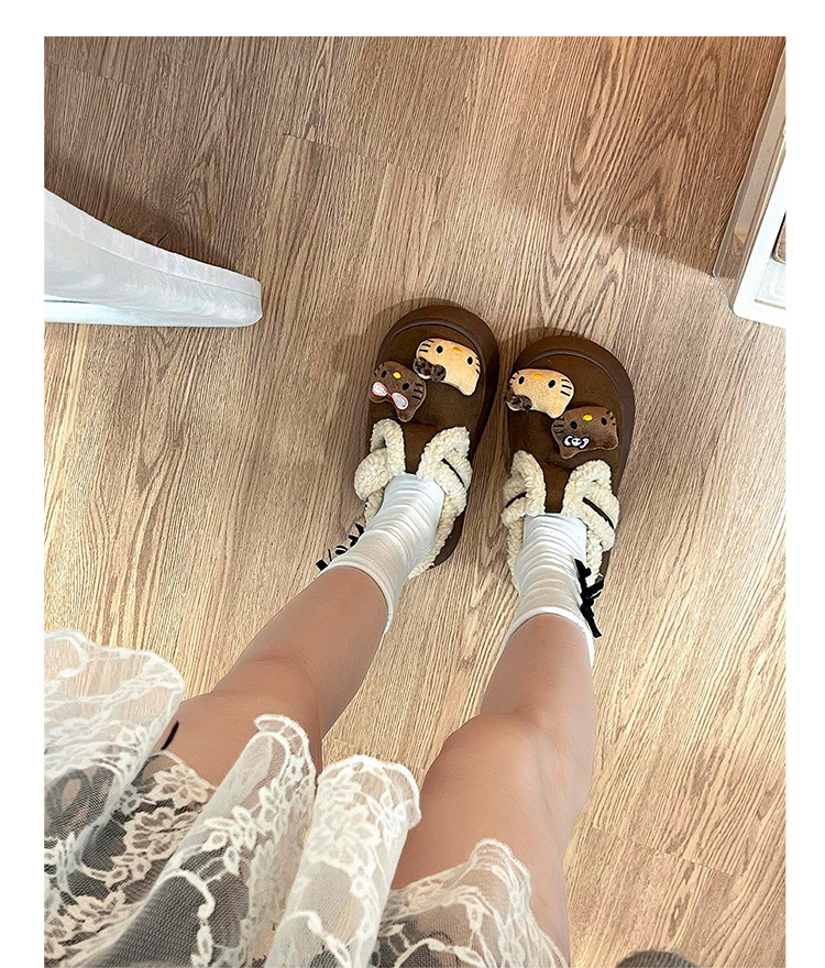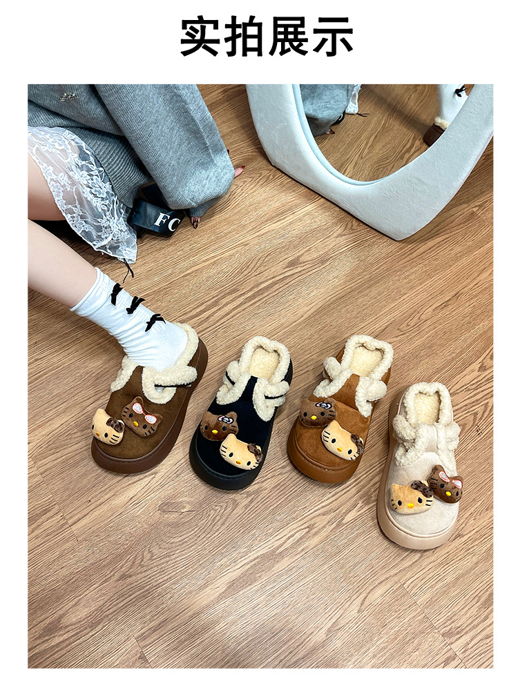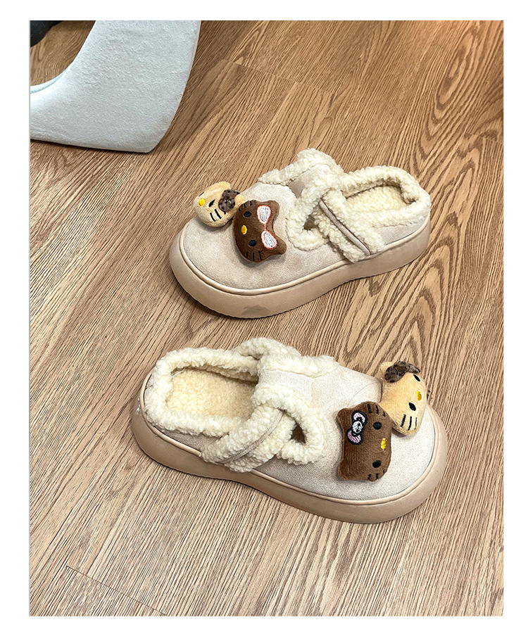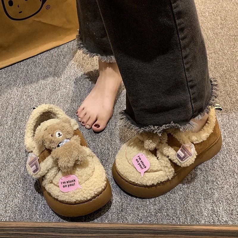 可爱卡通小熊奶昔毛毛鞋女2025秋冬季新款厚底百搭增高魔术贴棉鞋