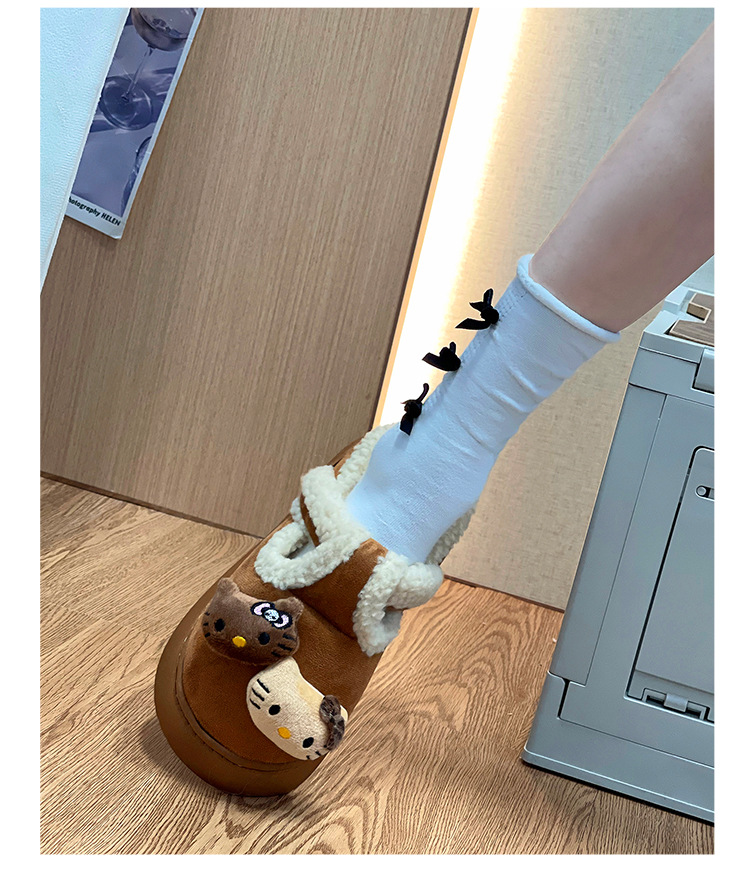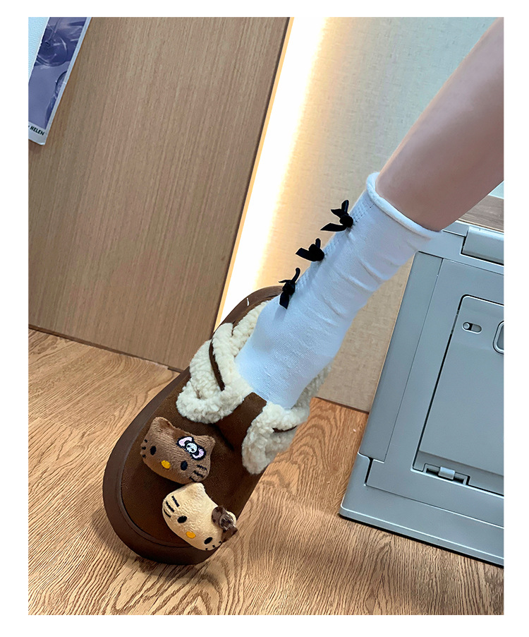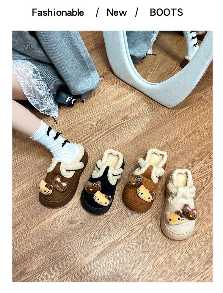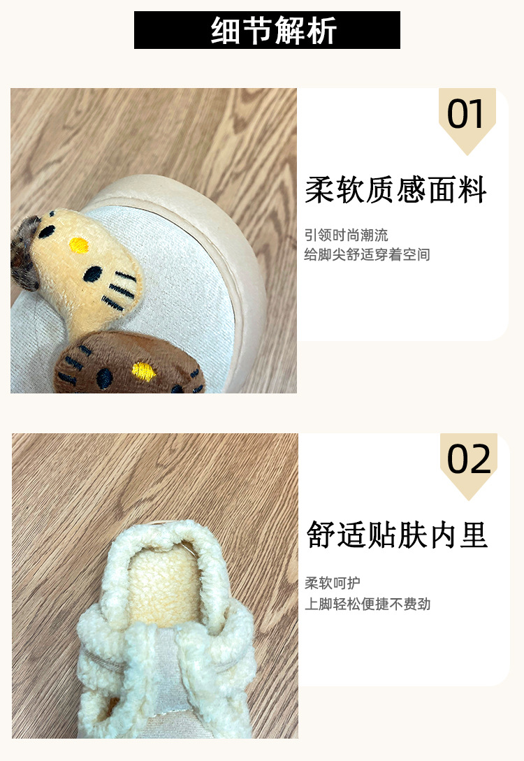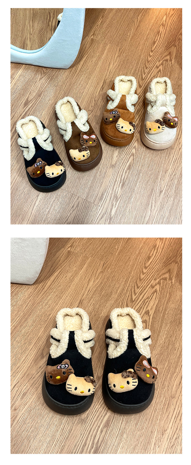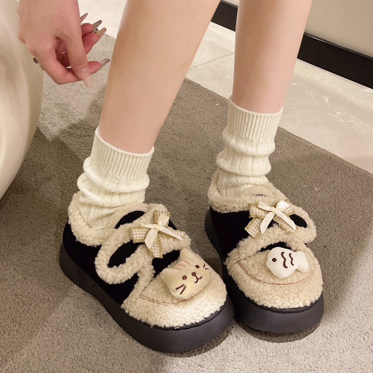 起爆金とベルベットが厚くて暖かいマジック雪地靴2024冬かわいい子猫アニメ小魚綿靴