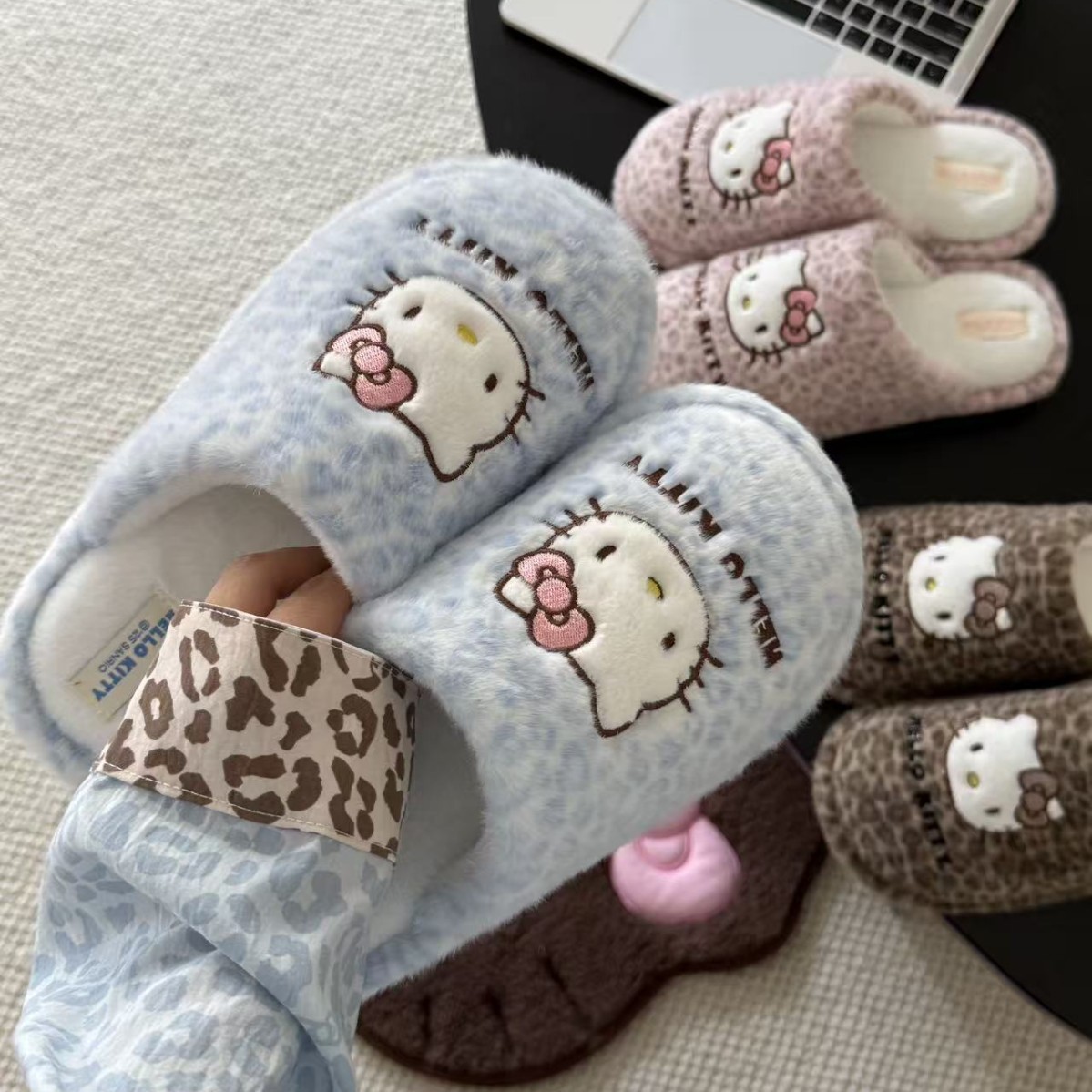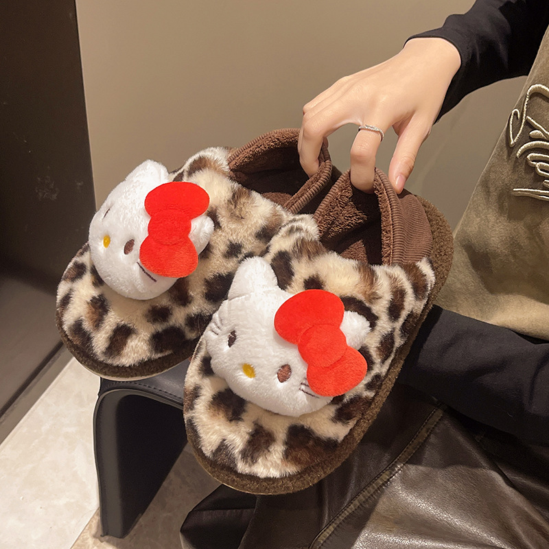 ヒョウ柄の子猫 ~ 高颜値千年ギャル風レトロな包頭毛スリッパ女性の家の室内保温綿引き