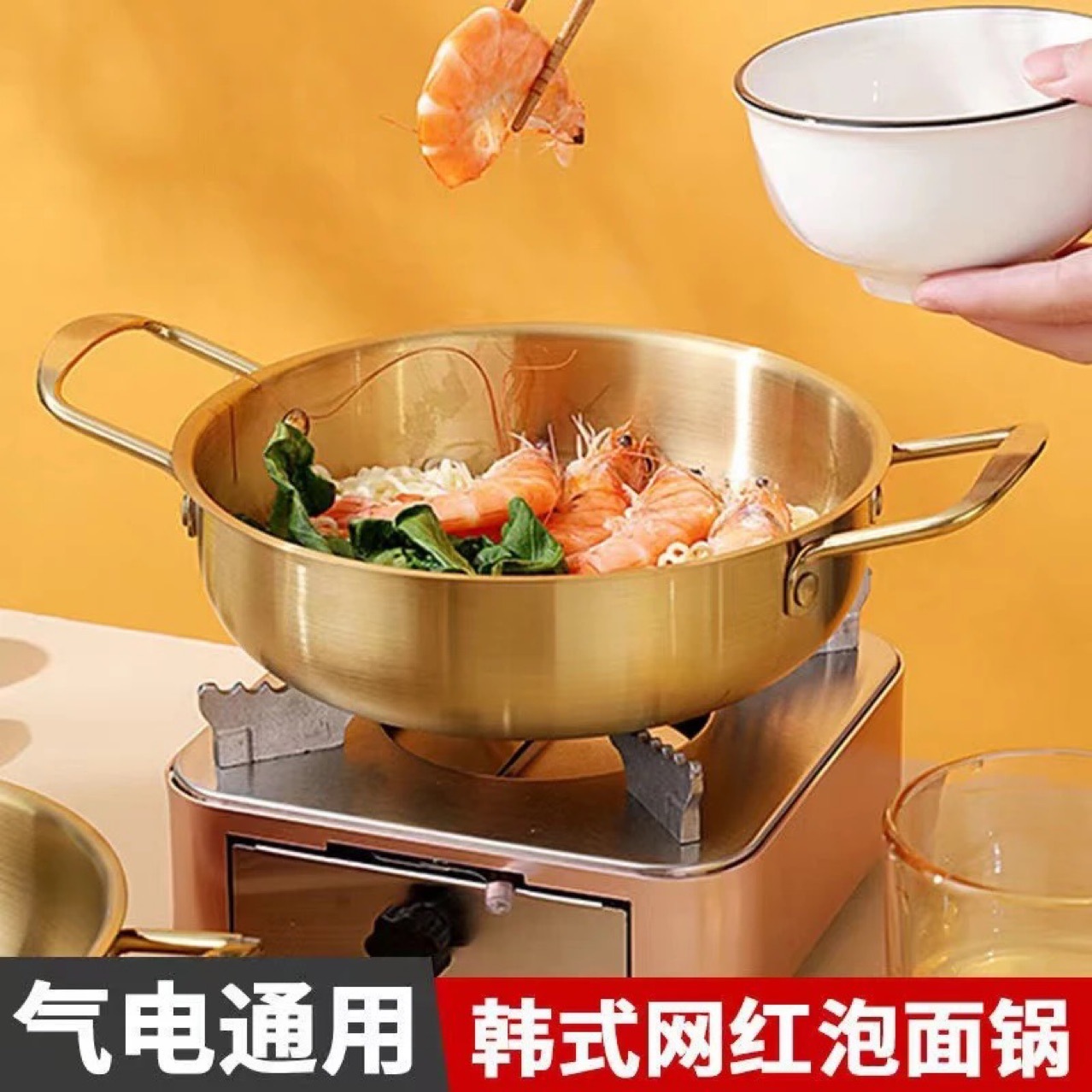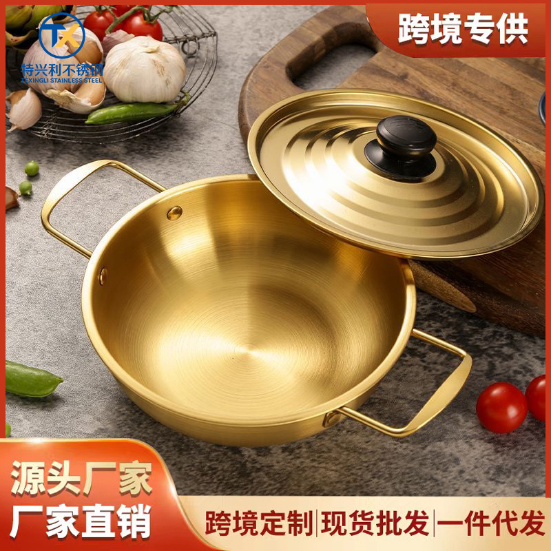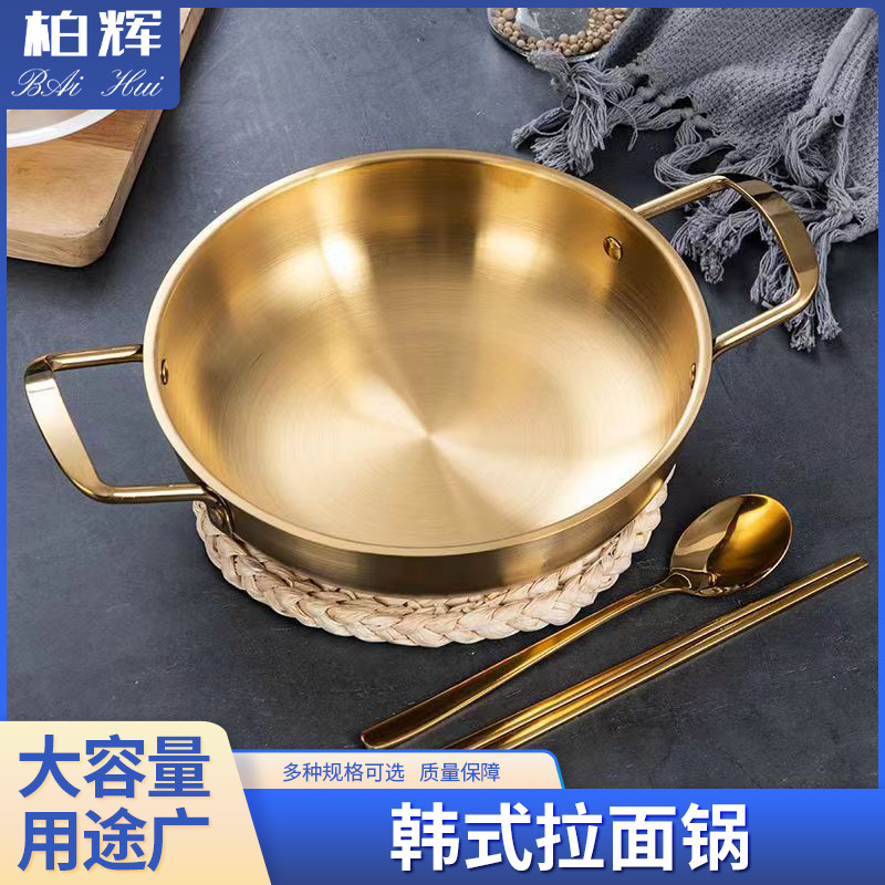 韓国式カップラーメン鍋双耳部隊鍋電磁炉金色ラーメン鍋海鮮鍋厚いステンレススープ鍋