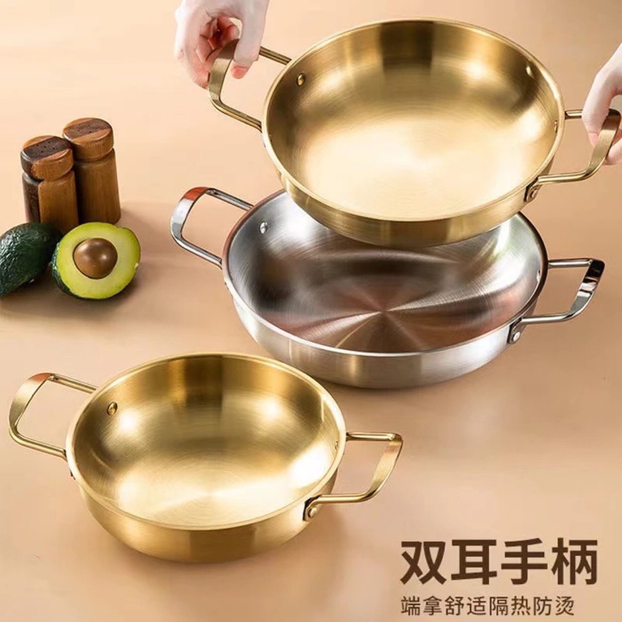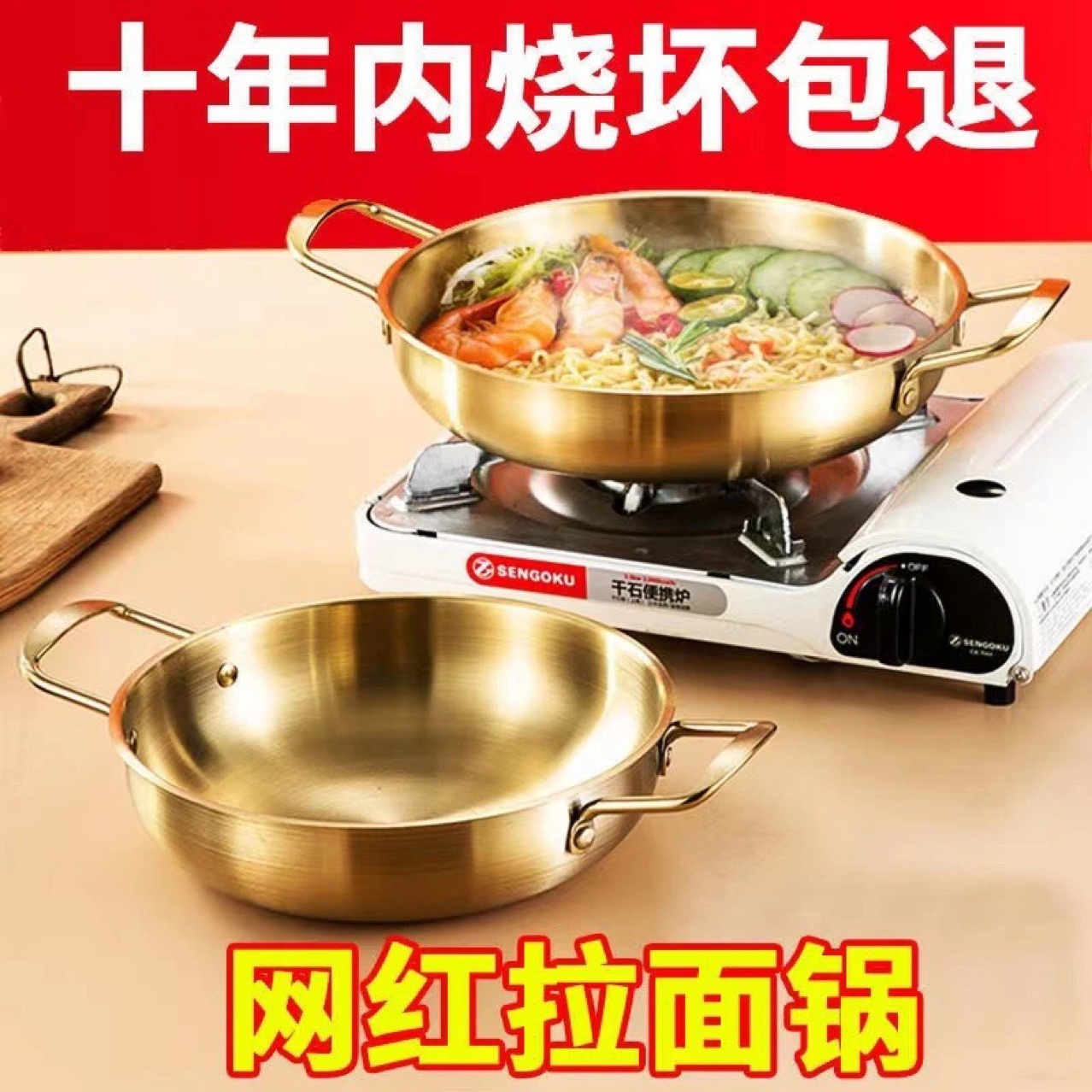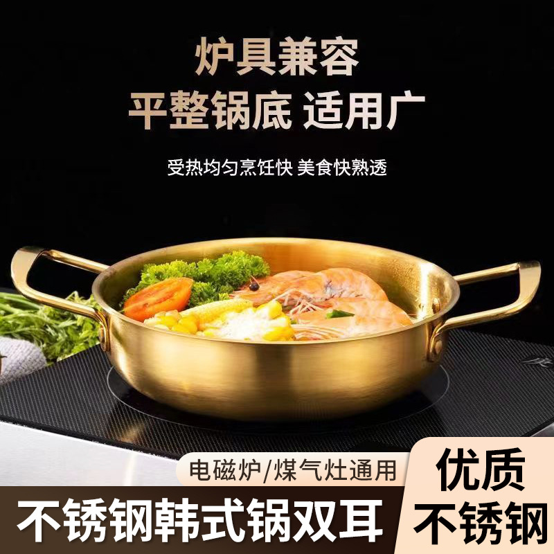 ネット赤海鮮金鍋ステンレス韓国式鍋両耳湯ネット赤カップラーメン金色の厚い耐久性強化小乾燥鍋