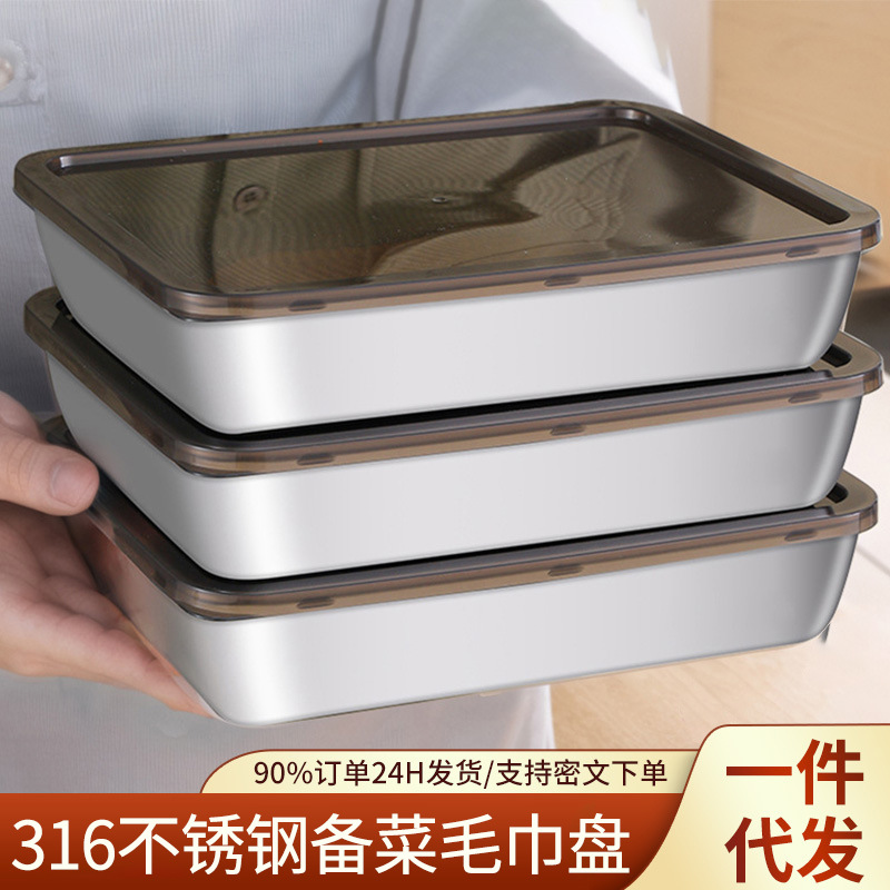 食品級316ステンレス備菜盤厨房生漬け食品専用長方形蓋付きステンレスタオル盤