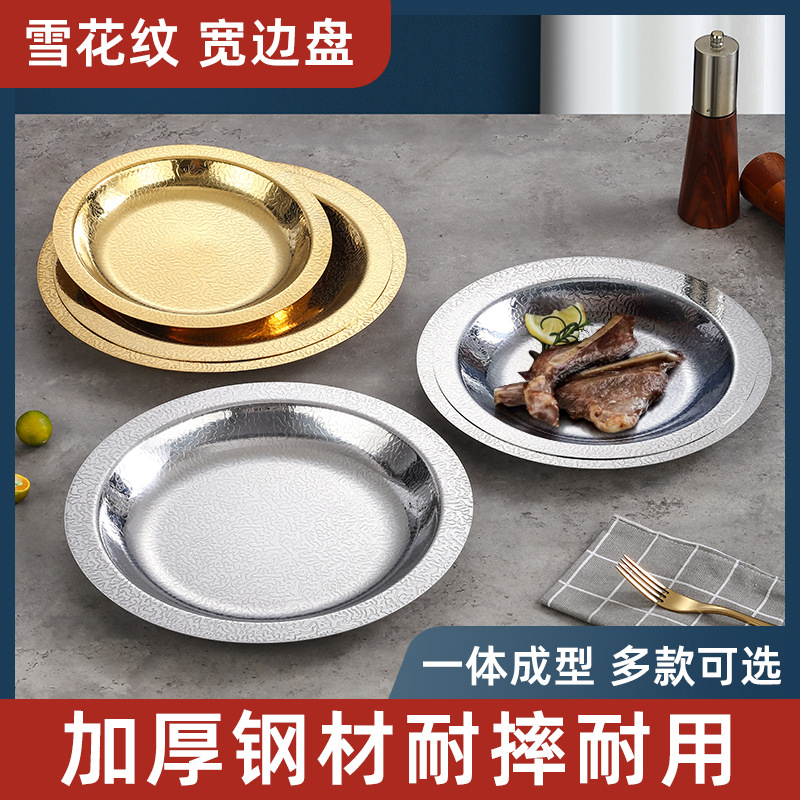 韓国式ステンレス特厚食盤雪花紋盤蟹肉煮海鮮トレーデザートレストラン皿幅