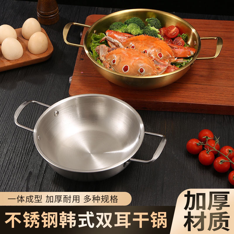 韓国式ステンレス製カップラーメン鍋商用小鍋金色双耳乾鍋家庭用ガススープ鍋海鮮鍋が厚くなった