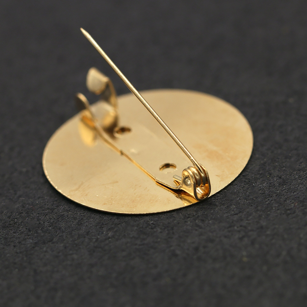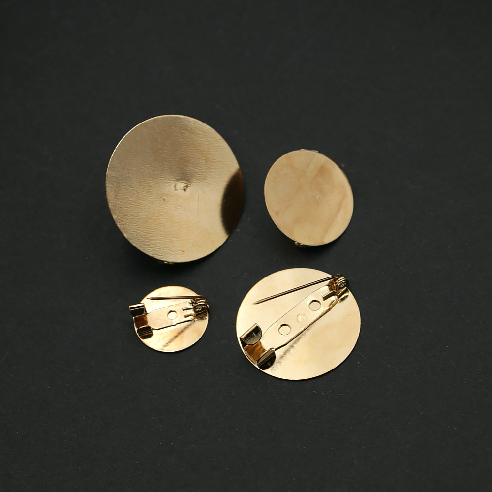 14kブローチのフラットバッグの金の保色20mm 25mmのトレーの服diyの手作りのブローチの材料は卸売りを飾ります。