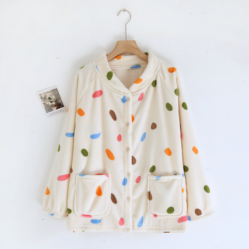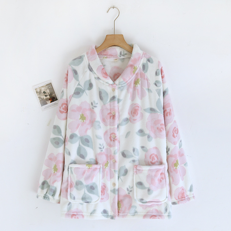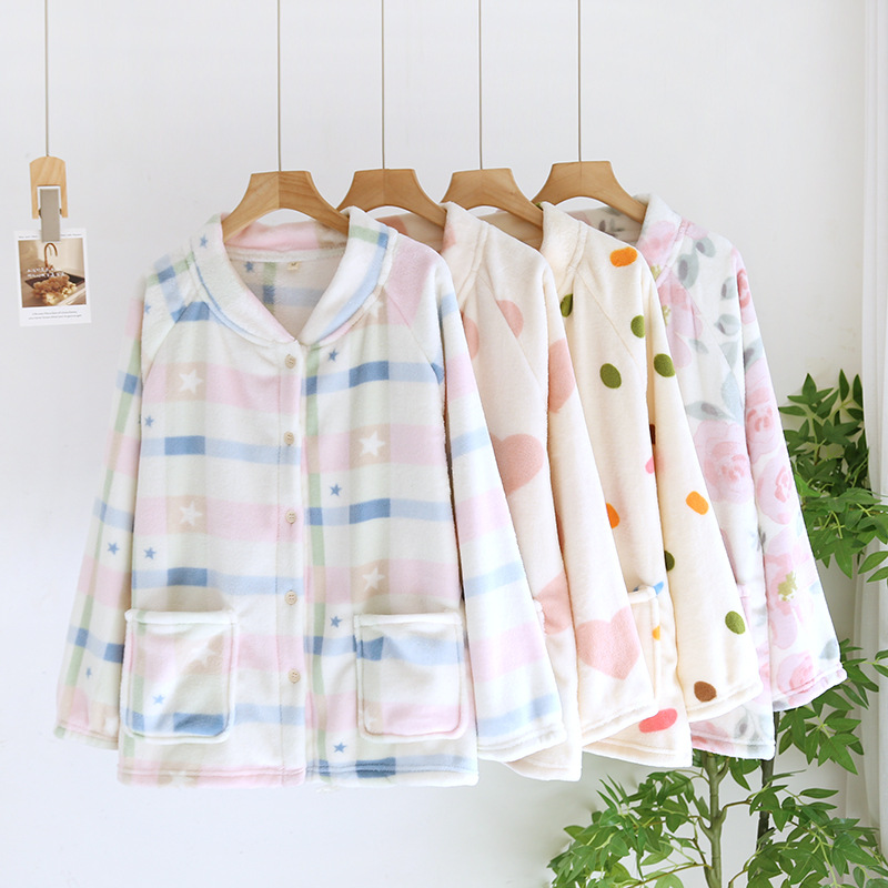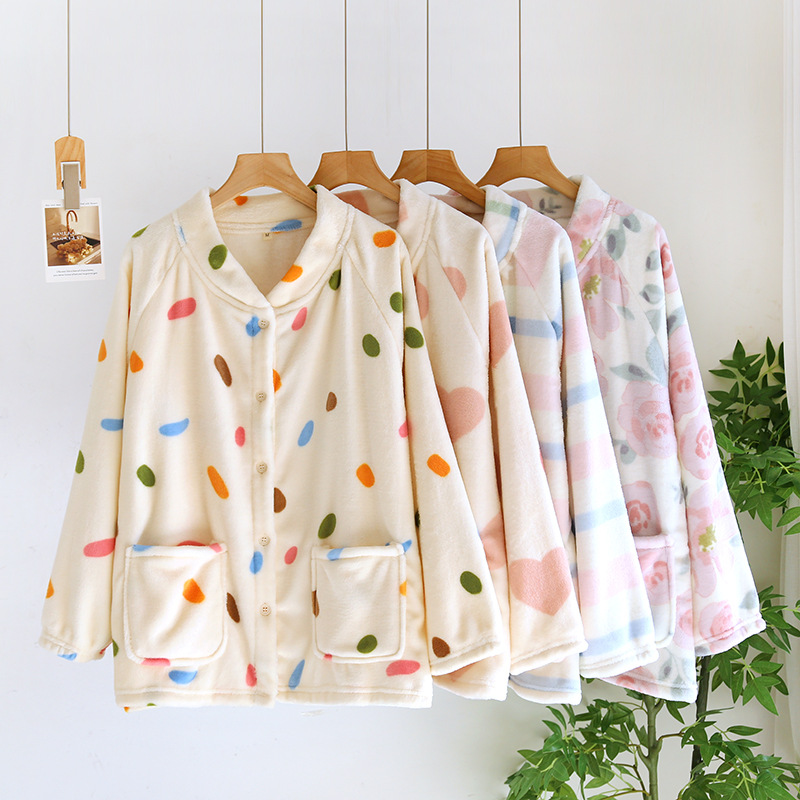 上着のパジャマ女性秋冬の冬のフランネルの厚いベルベットの家の服の冬の長袖