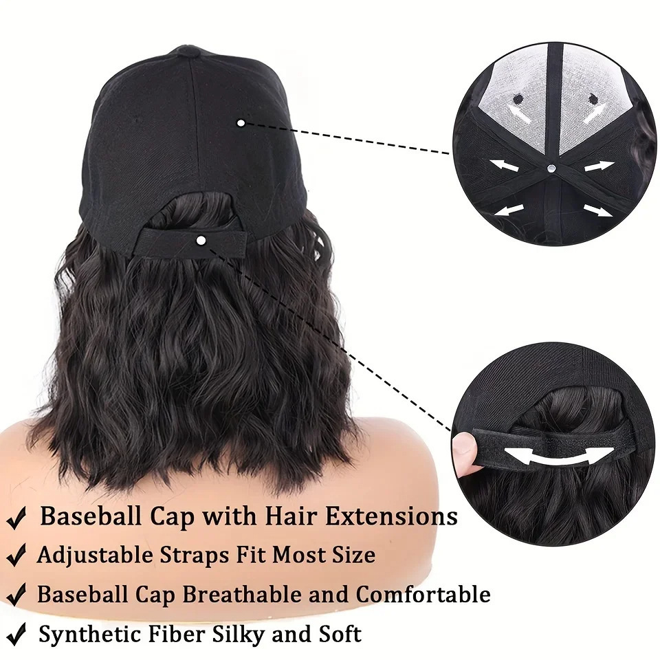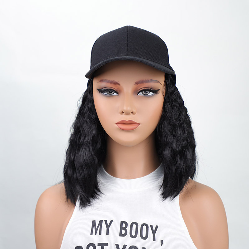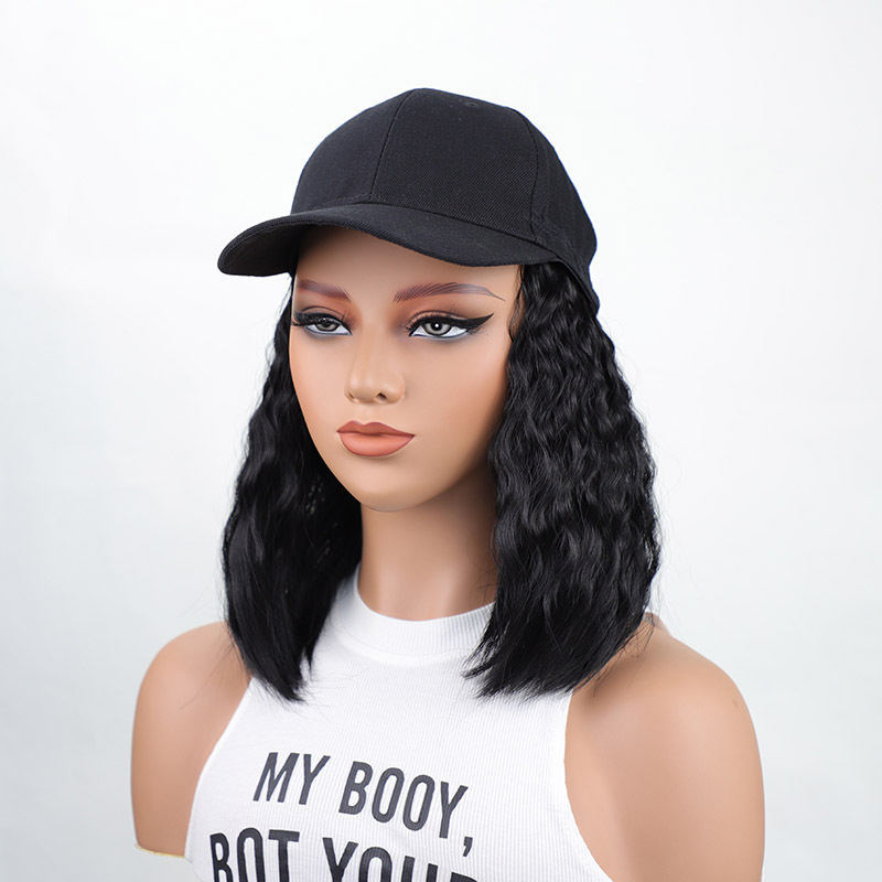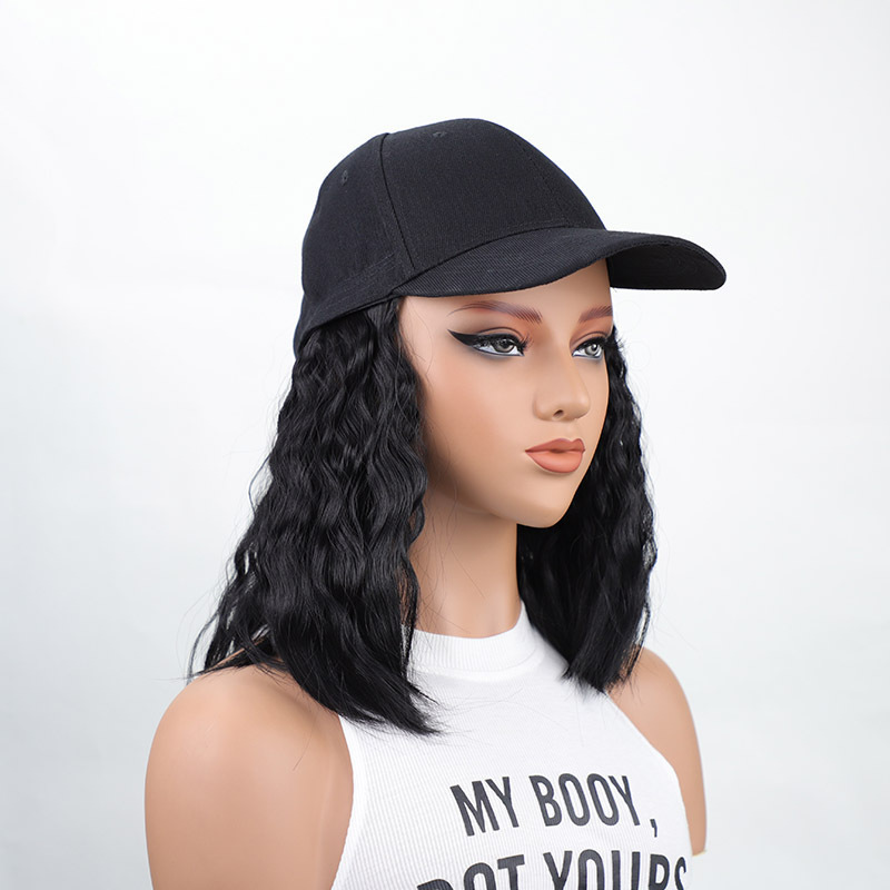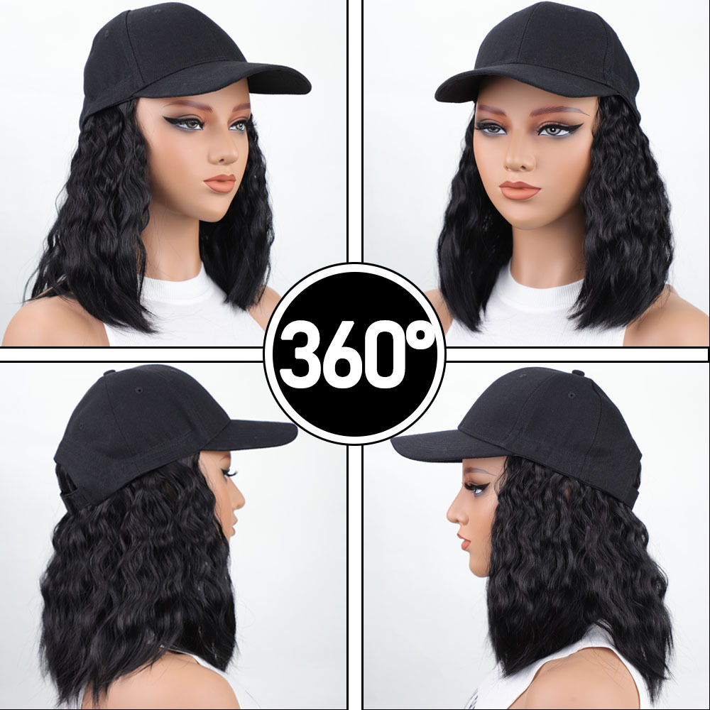 黑色鸭舌帽短款羊毛卷跨境欧美一体式帽子假发蓬松透气棒球帽假发