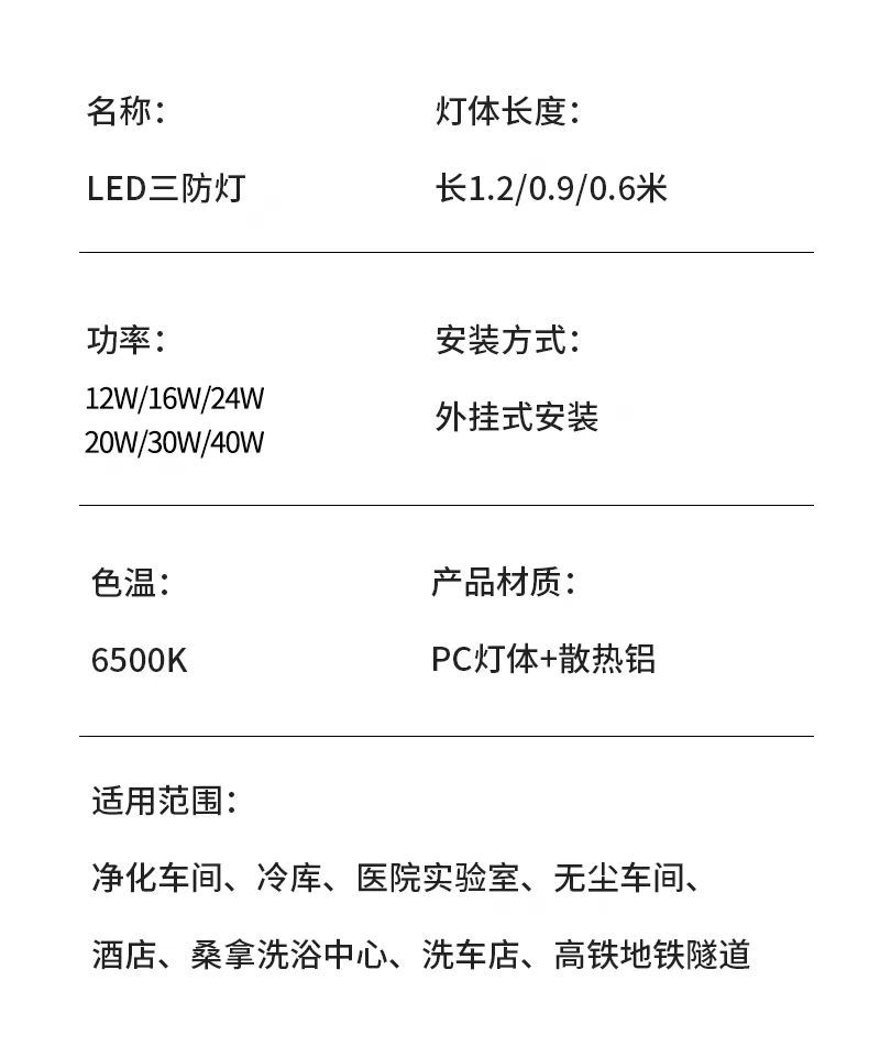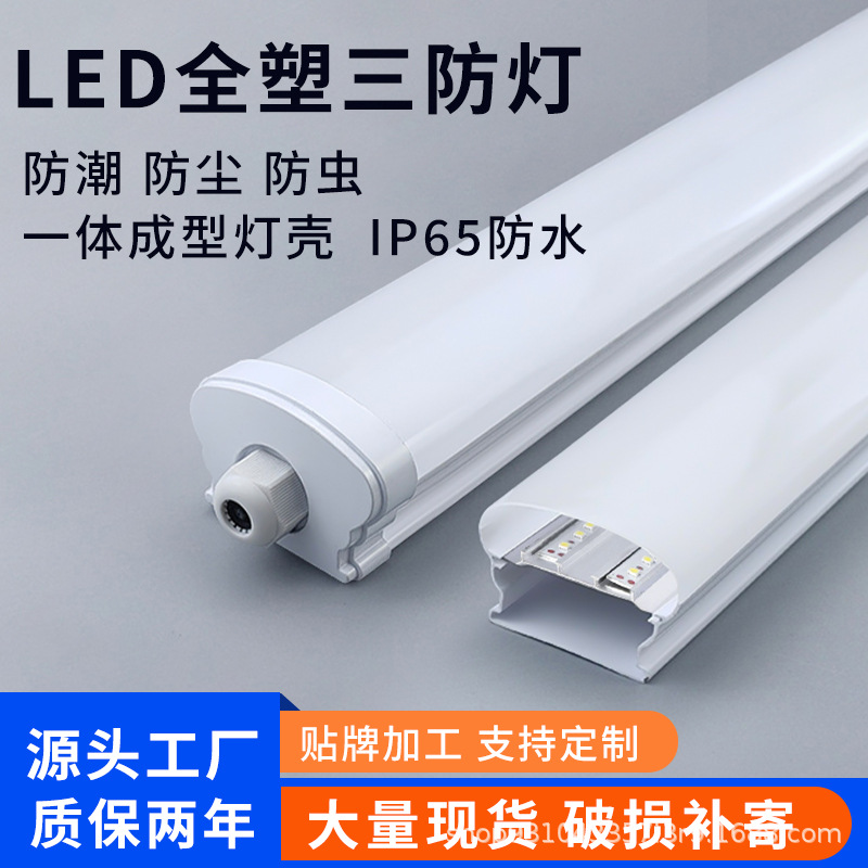 LED三防灯IP65户外防水防潮厂房车间冷库浴室长条灯LED工程照明