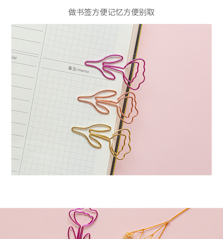 人気商品 電気メッキ ローズ型 ペーパークリップ カラフル クリエイティブ オフィス ハンドブック用 曲がるクリップ 特殊形状 ペーパークリップ ハンドブック用
