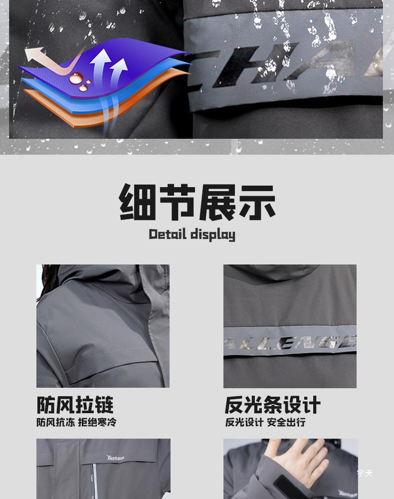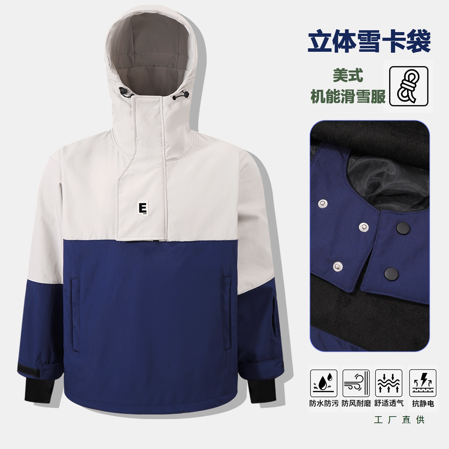 外贸户外重磅滑雪连帽卫衣男女撞色加绒防水防风单板滑雪服