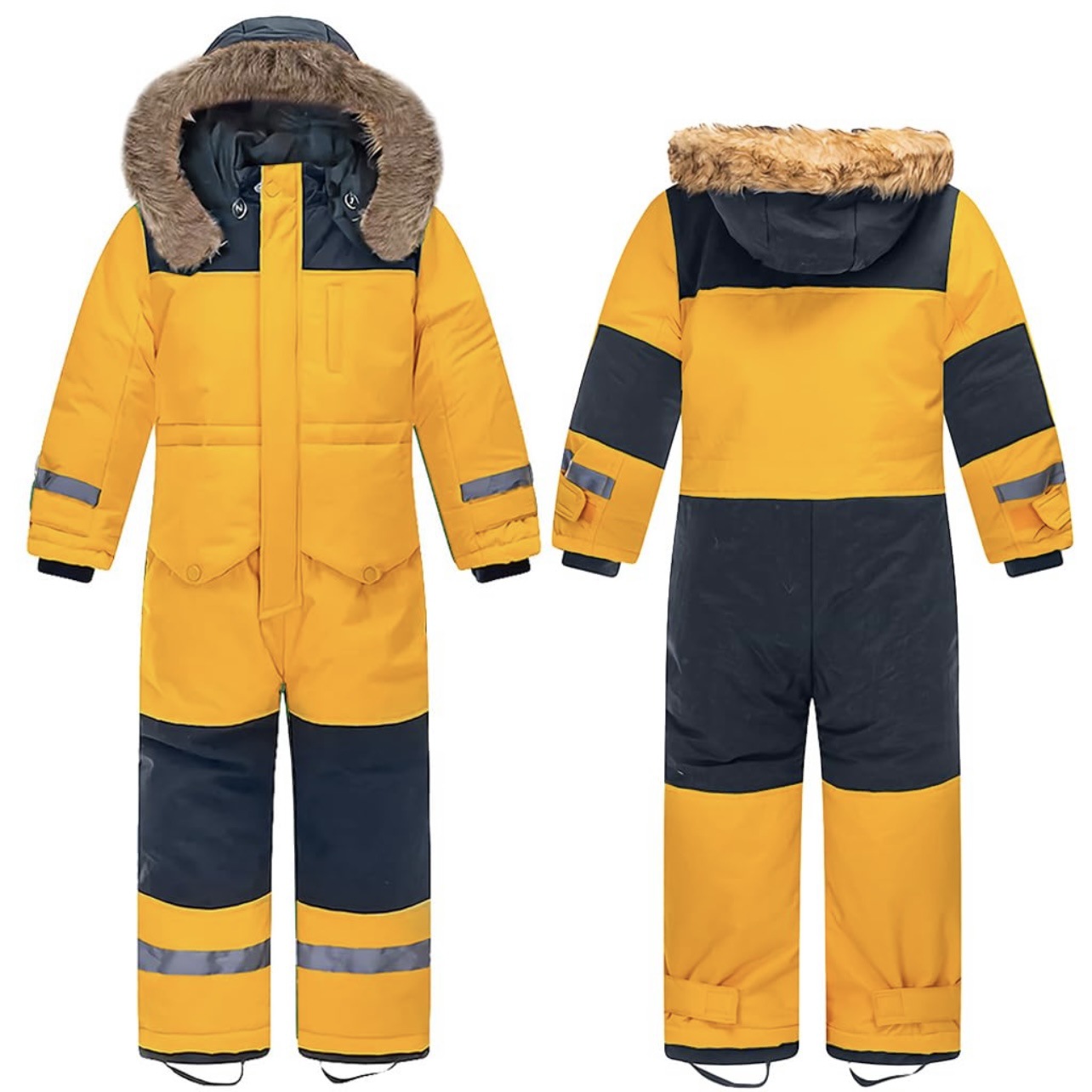 现货热卖厂家直销户外单双板夜光防风防水加厚保暖连体儿童滑雪服
